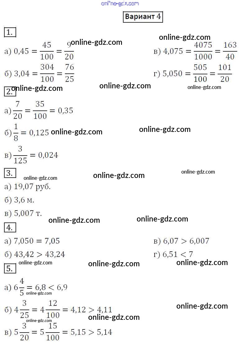 Готовые домашние задания по Математике за 6 класс Дидактические материалы Потапов, Шевкин МГУ - школе 2017 - СР-26. Варианты Самостоятельные работы 4