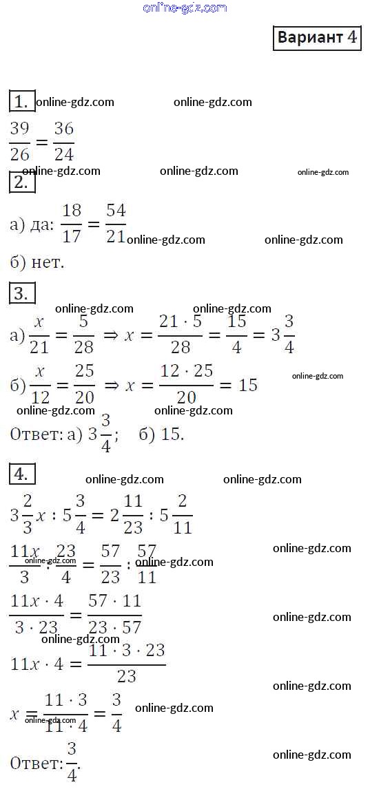 Готовые домашние задания по Математике за 6 класс Дидактические материалы Потапов, Шевкин МГУ - школе 2017 - СР-3. Варианты Самостоятельные работы 4