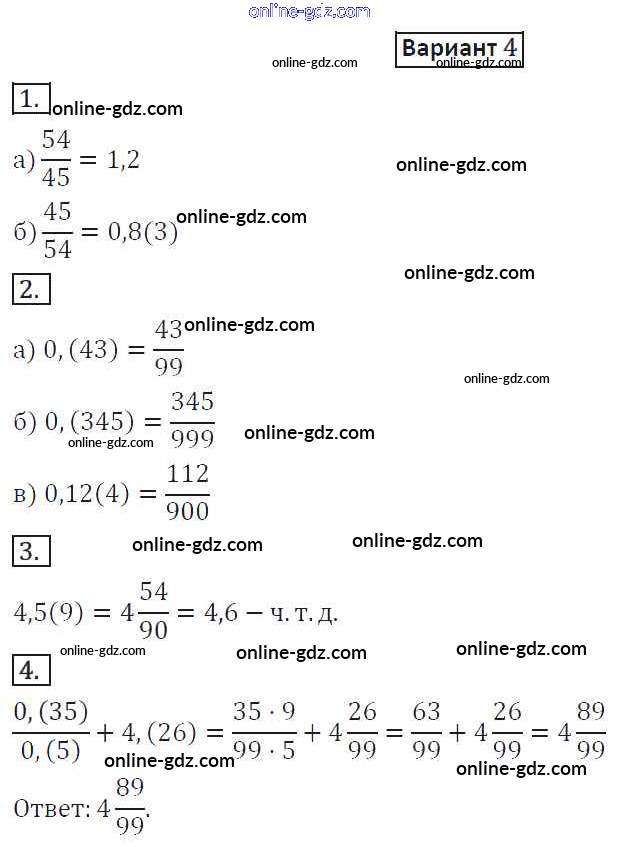 Готовые домашние задания по Математике за 6 класс Дидактические материалы Потапов, Шевкин МГУ - школе 2017 - СР-38. Варианты Самостоятельные работы 4