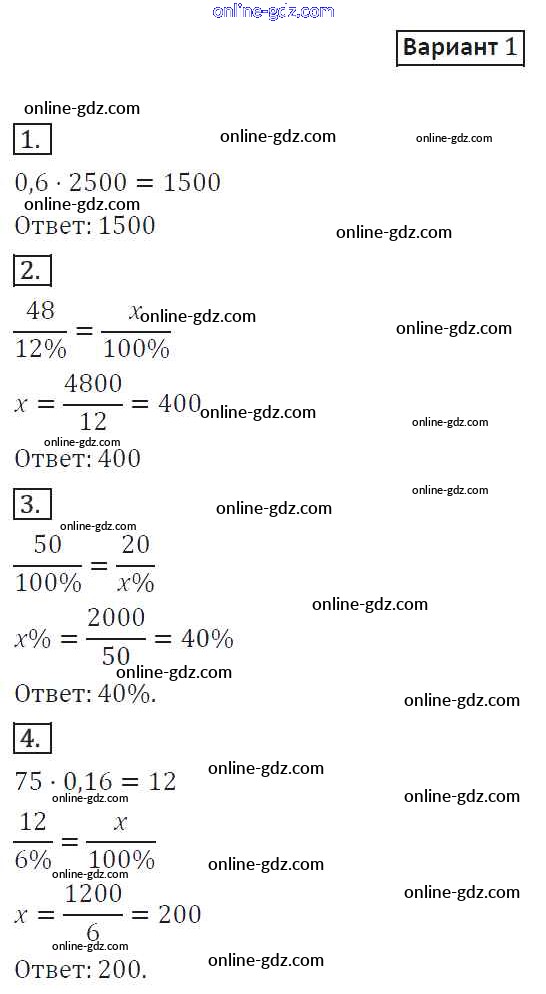 Готовые домашние задания по Математике за 6 класс Дидактические материалы Потапов, Шевкин МГУ - школе 2017 - СР-4. Варианты Самостоятельные работы 1