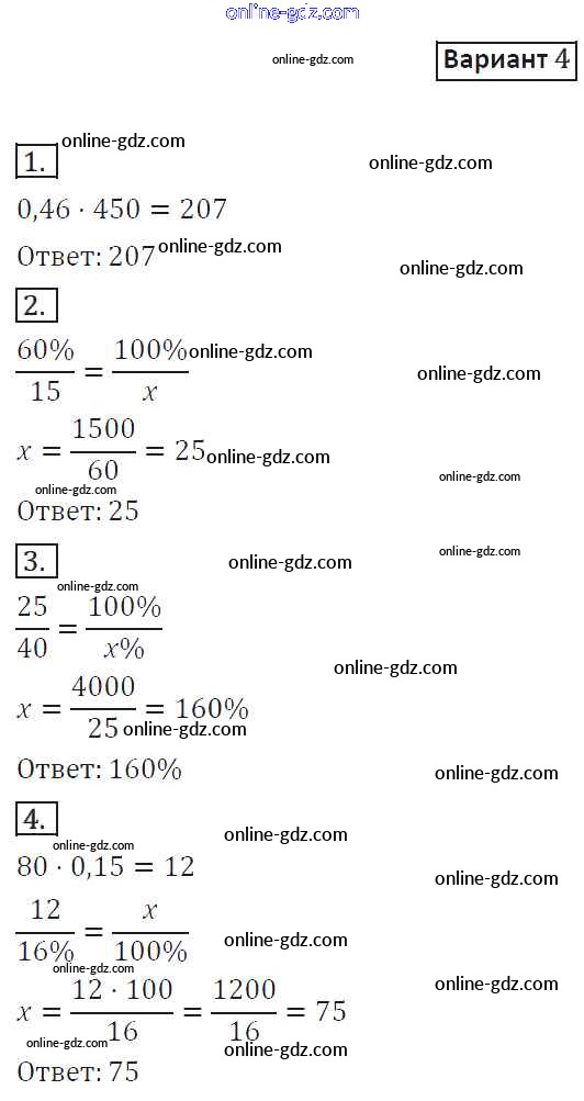 Готовые домашние задания по Математике за 6 класс Дидактические материалы Потапов, Шевкин МГУ - школе 2017 - СР-4. Варианты Самостоятельные работы 4