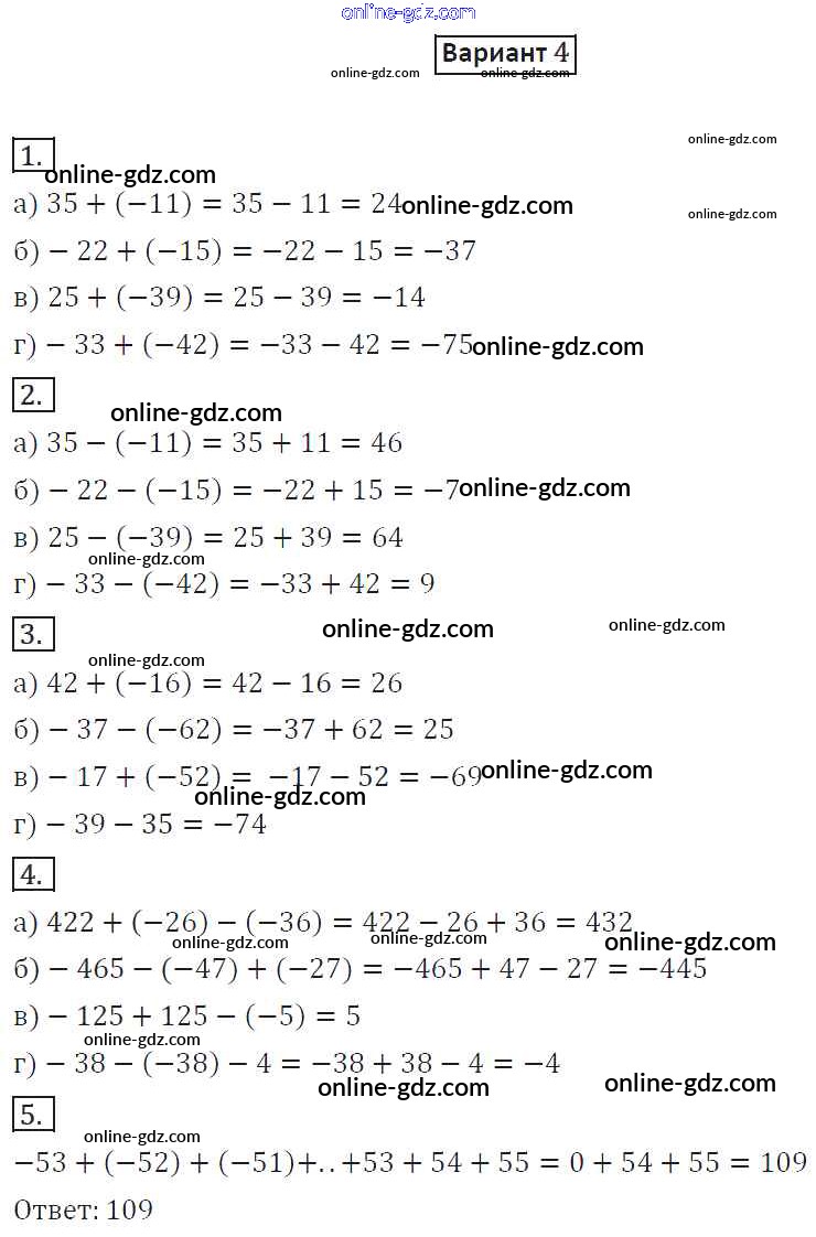 Готовые домашние задания по Математике за 6 класс Дидактические материалы Потапов, Шевкин МГУ - школе 2017 - СР-9. Варианты Самостоятельные работы 4