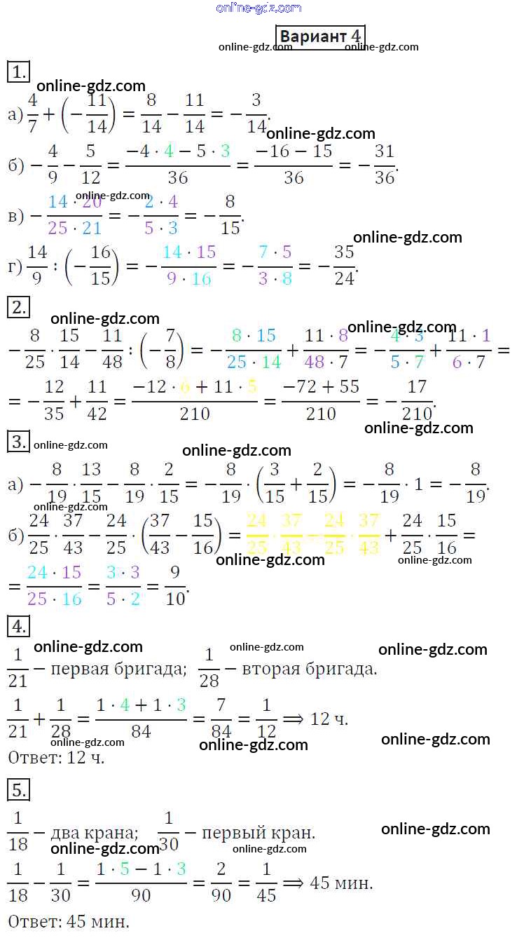 Готовые домашние задания по Математике за 6 класс Дидактические материалы Потапов, Шевкин МГУ - школе 2017 - КР-4. Варианты Контрольные работы 4
