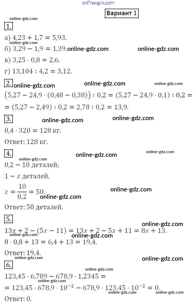Готовые домашние задания по Математике за 6 класс Дидактические материалы Потапов, Шевкин МГУ - школе 2017 - КР-6. Варианты Контрольные работы 1