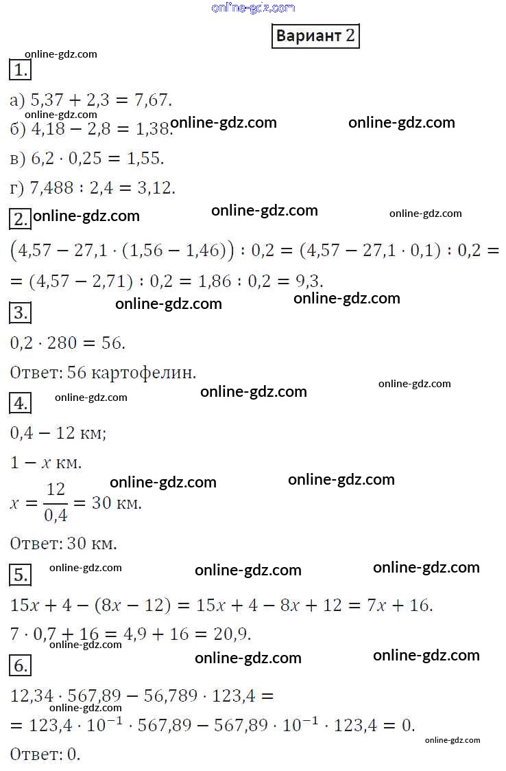 Готовые домашние задания по Математике за 6 класс Дидактические материалы Потапов, Шевкин МГУ - школе 2017 - КР-6. Варианты Контрольные работы 2