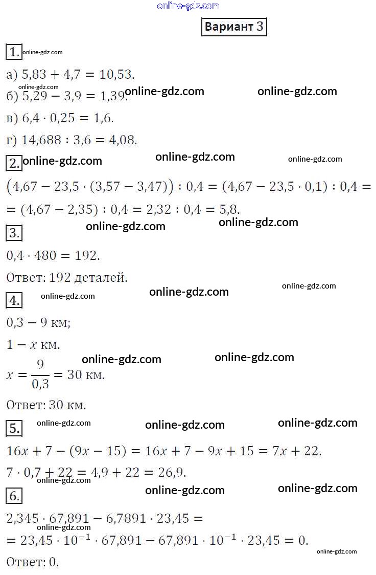 Готовые домашние задания по Математике за 6 класс Дидактические материалы Потапов, Шевкин МГУ - школе 2017 - КР-6. Варианты Контрольные работы 3