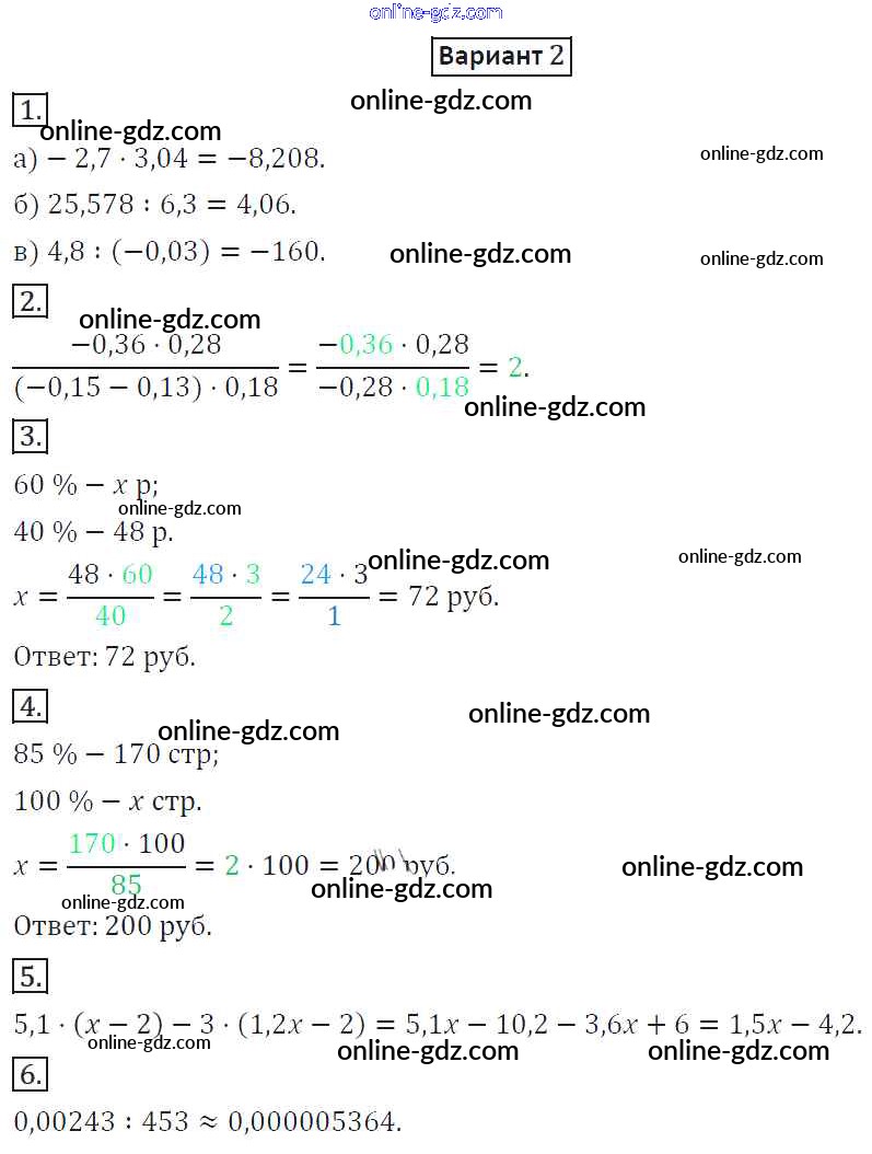 Готовые домашние задания по Математике за 6 класс Дидактические материалы Потапов, Шевкин МГУ - школе 2017 - КР-7. Варианты Контрольные работы 2