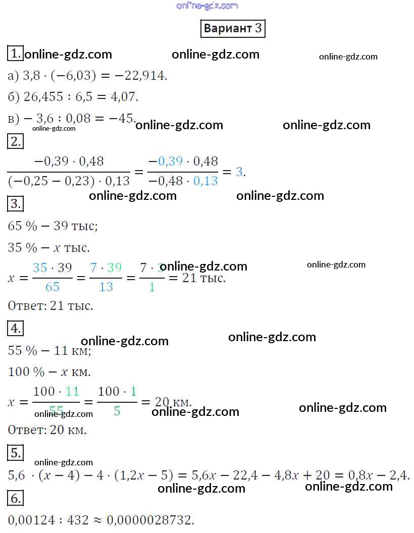 Готовые домашние задания по Математике за 6 класс Дидактические материалы Потапов, Шевкин МГУ - школе 2017 - КР-7. Варианты Контрольные работы 3