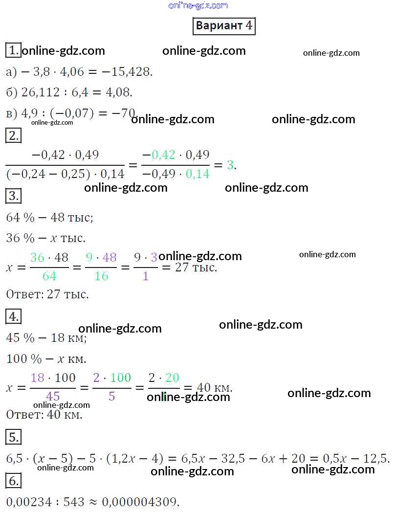 Готовые домашние задания по Математике за 6 класс Дидактические материалы Потапов, Шевкин МГУ - школе 2017 - КР-7. Варианты Контрольные работы 4