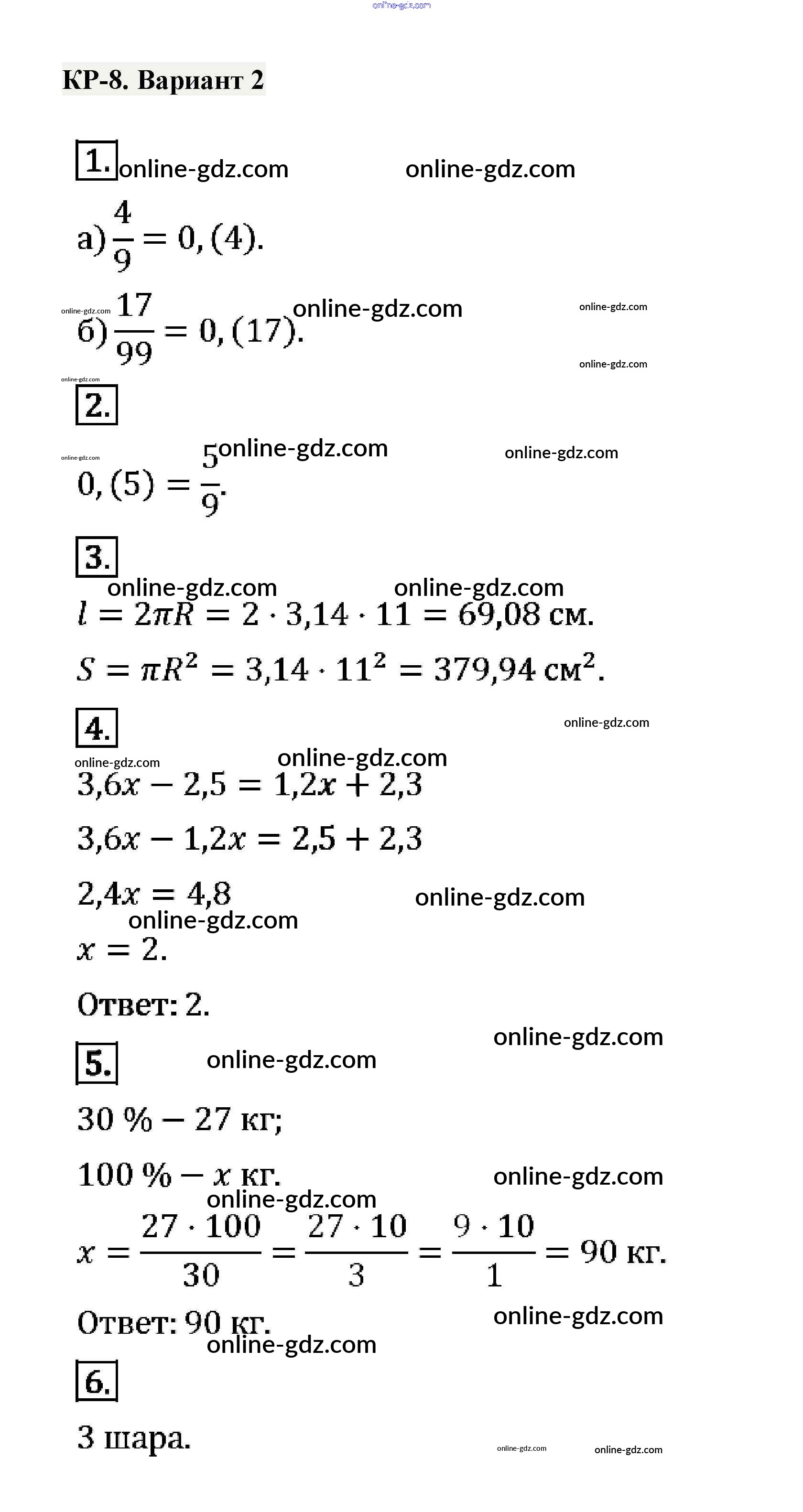 Готовые домашние задания по Математике за 6 класс Дидактические материалы Потапов, Шевкин МГУ - школе 2017 - КР-8. Варианты Контрольные работы 2