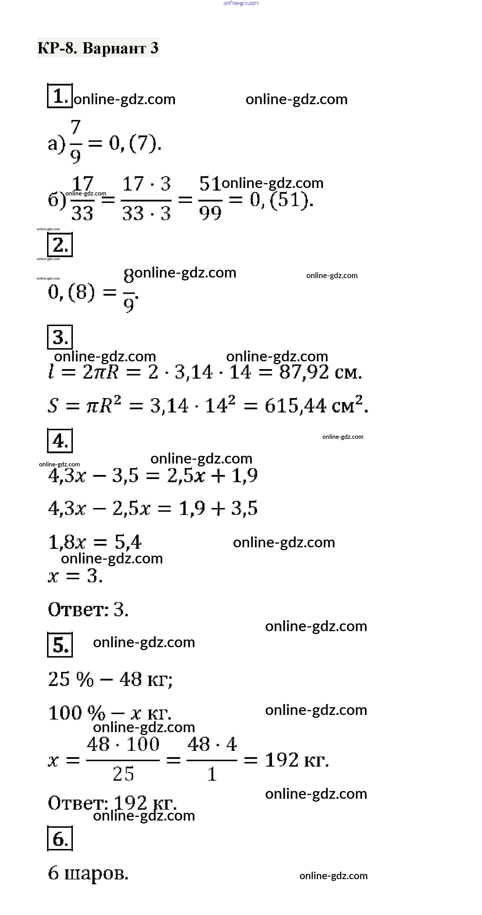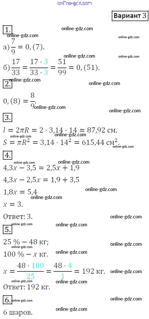 Готовые домашние задания по Математике за 6 класс Дидактические материалы Потапов, Шевкин МГУ - школе 2017 - КР-8. Варианты Контрольные работы 3