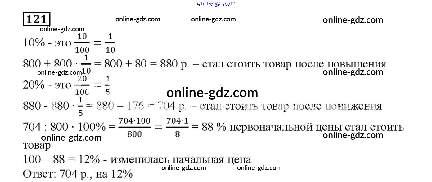 Готовые домашние задания по Математике за 6 класс Дидактические материалы Мерзляк, Полонский Алгоритм успеха 2017 - Вариант 1 Упражнения. Варианты 121