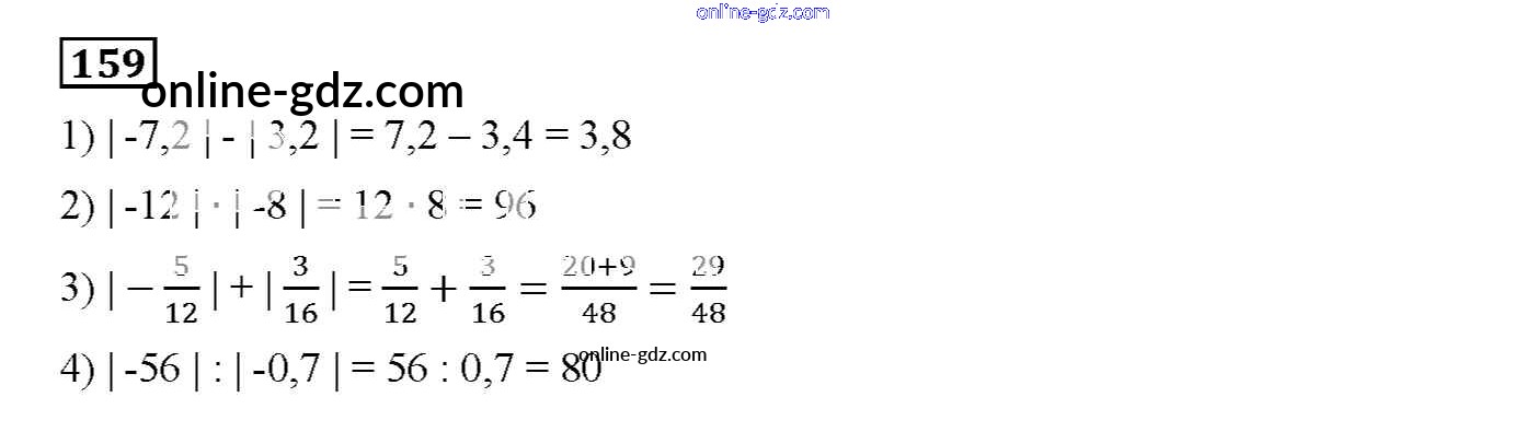 Готовые домашние задания по Математике за 6 класс Дидактические материалы Мерзляк, Полонский Алгоритм успеха 2017 - Вариант 1 Упражнения. Варианты 159