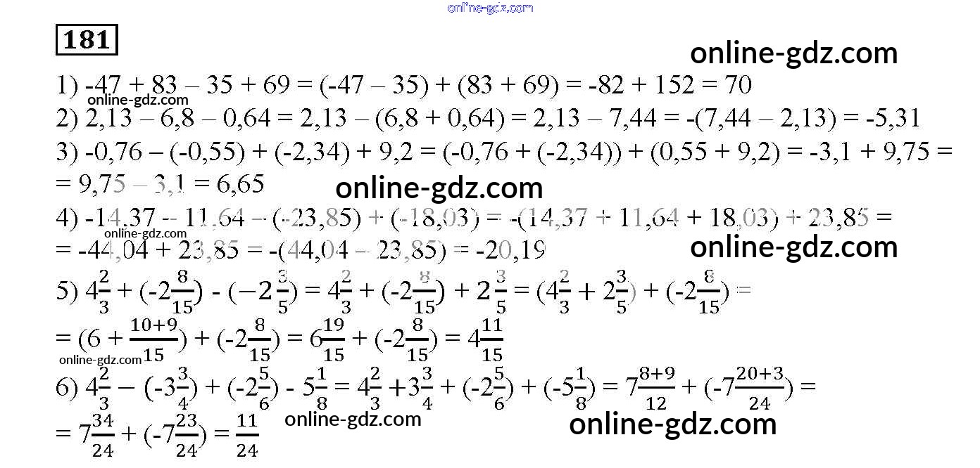 Готовые домашние задания по Математике за 6 класс Дидактические материалы Мерзляк, Полонский Алгоритм успеха 2017 - Вариант 1 Упражнения. Варианты 181
