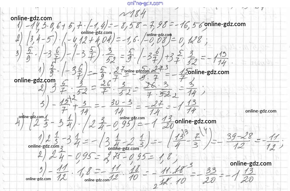 Готовые домашние задания по Математике за 6 класс Дидактические материалы Мерзляк, Полонский Алгоритм успеха 2017 - Вариант 1 Упражнения. Варианты 184