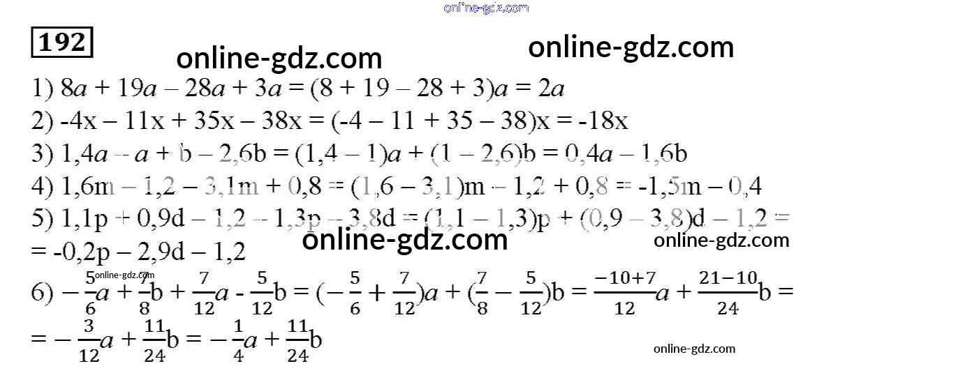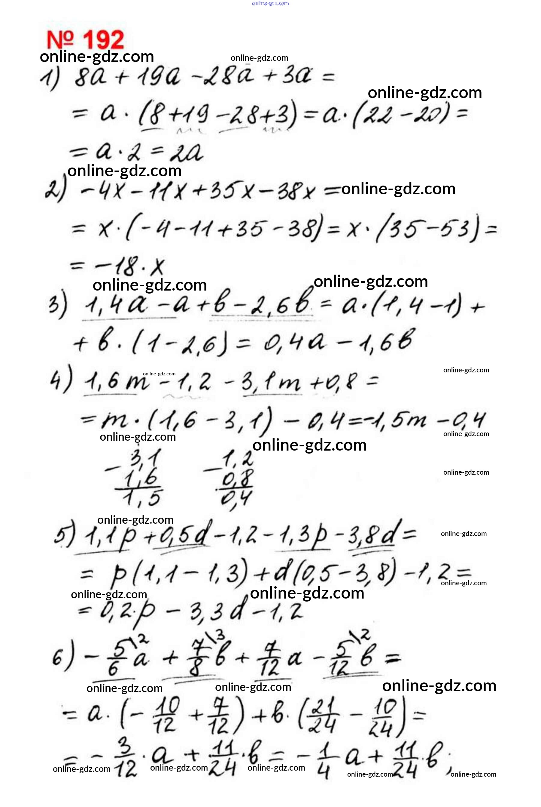 Готовые домашние задания по Математике за 6 класс Дидактические материалы Мерзляк, Полонский Алгоритм успеха 2017 - Вариант 1 Упражнения. Варианты 192