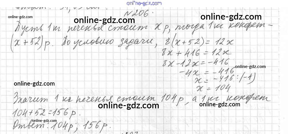 Готовые домашние задания по Математике за 6 класс Дидактические материалы Мерзляк, Полонский Алгоритм успеха 2017 - Вариант 1 Упражнения. Варианты 206