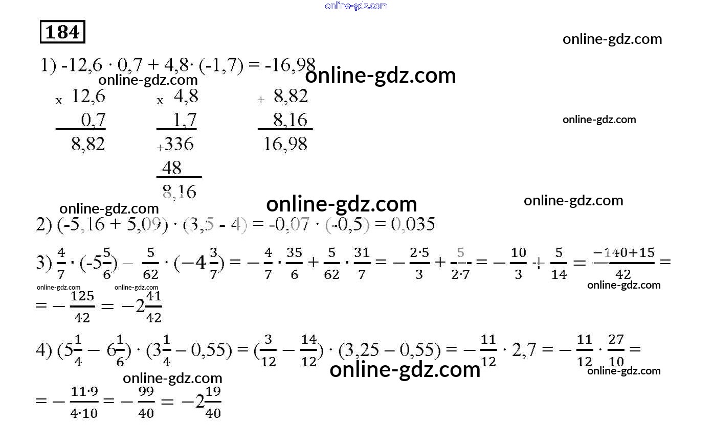 Готовые домашние задания по Математике за 6 класс Дидактические материалы Мерзляк, Полонский Алгоритм успеха 2017 - Вариант 2 Упражнения. Варианты 184