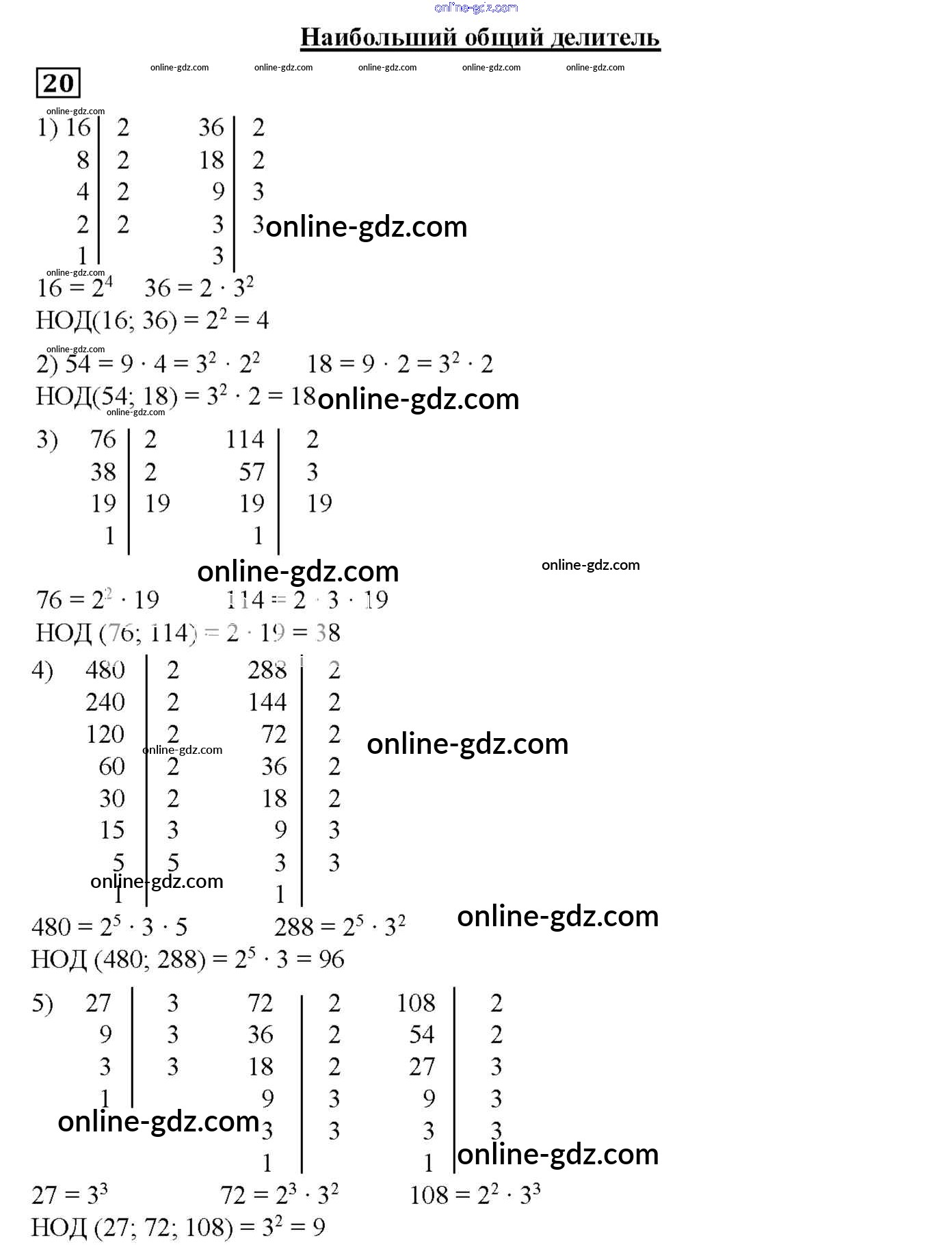 Готовые домашние задания по Математике за 6 класс Дидактические материалы Мерзляк, Полонский Алгоритм успеха 2017 - Вариант 2 Упражнения. Варианты 20