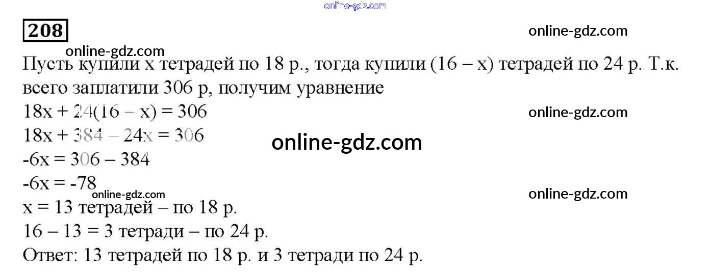 Готовые домашние задания по Математике за 6 класс Дидактические материалы Мерзляк, Полонский Алгоритм успеха 2017 - Вариант 3 Упражнения. Варианты 208