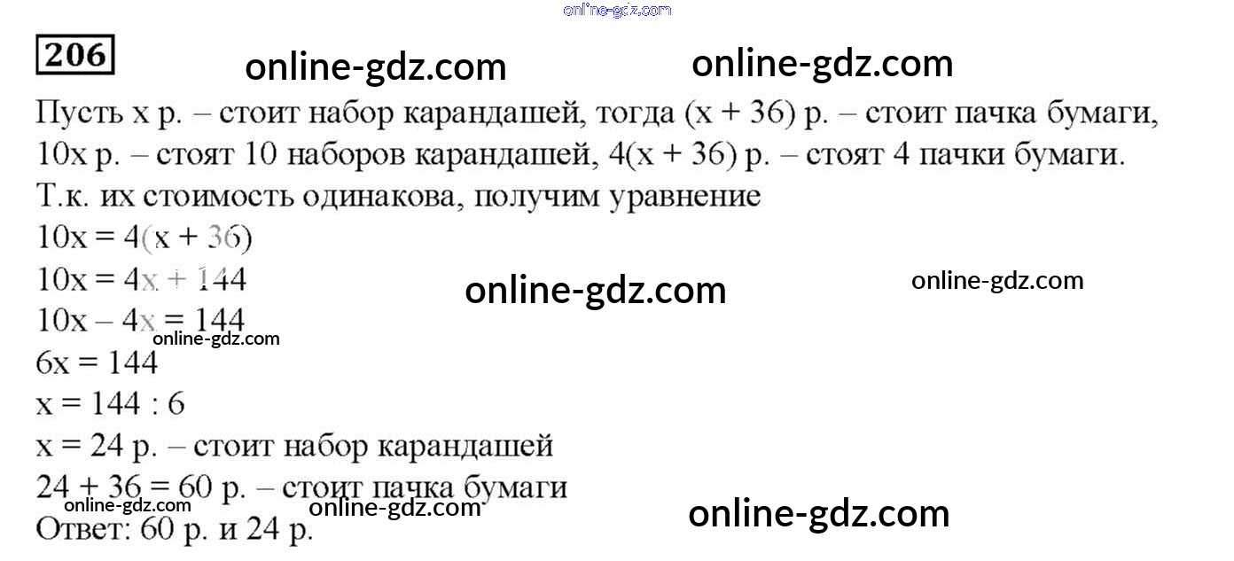 Готовые домашние задания по Математике за 6 класс Дидактические материалы Мерзляк, Полонский Алгоритм успеха 2017 - Вариант 4 Упражнения. Варианты 206