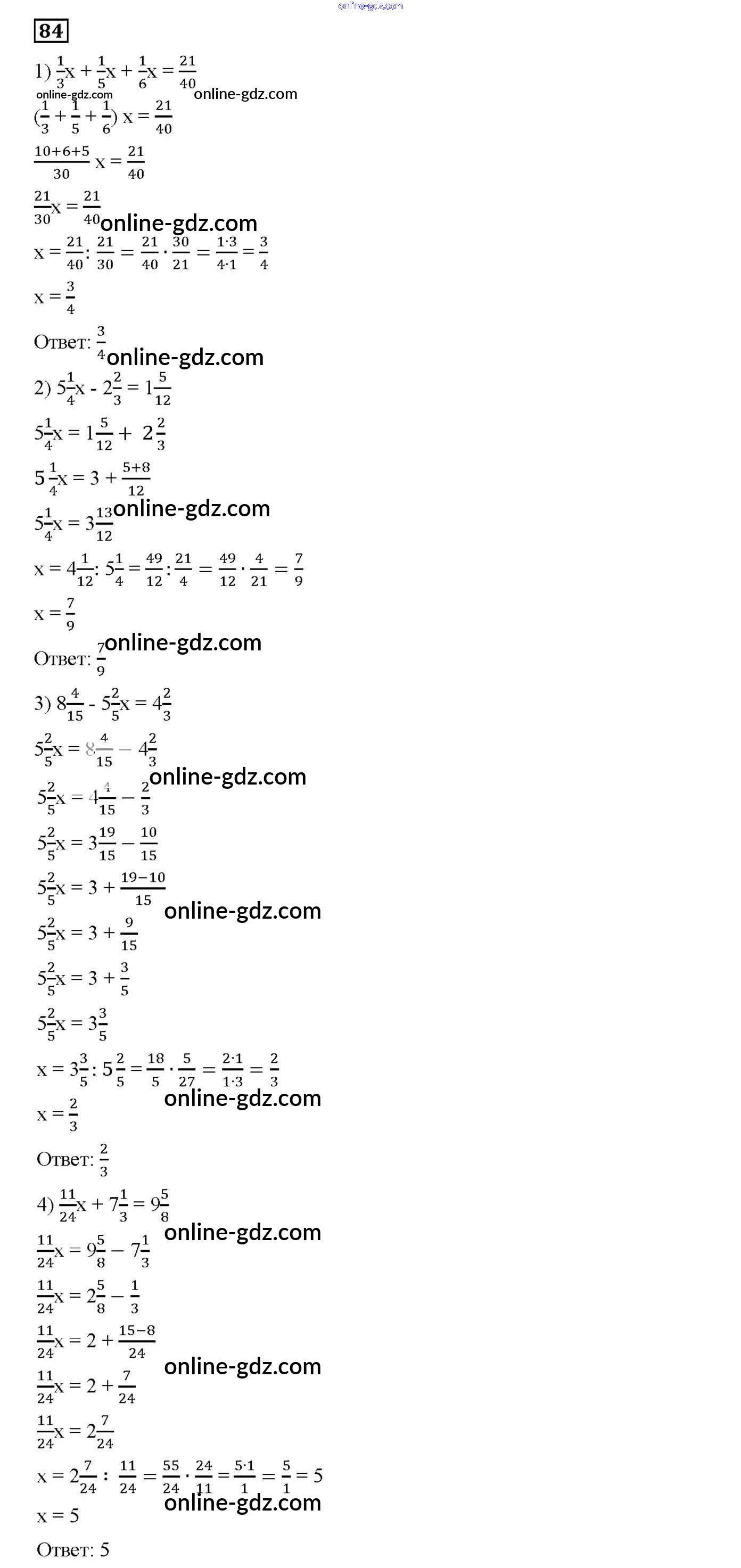 Готовые домашние задания по Математике за 6 класс Дидактические материалы Мерзляк, Полонский Алгоритм успеха 2017 - Вариант 4 Упражнения. Варианты 84