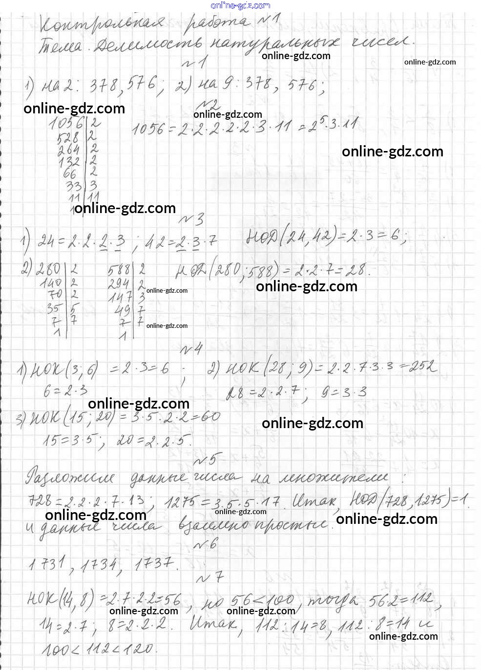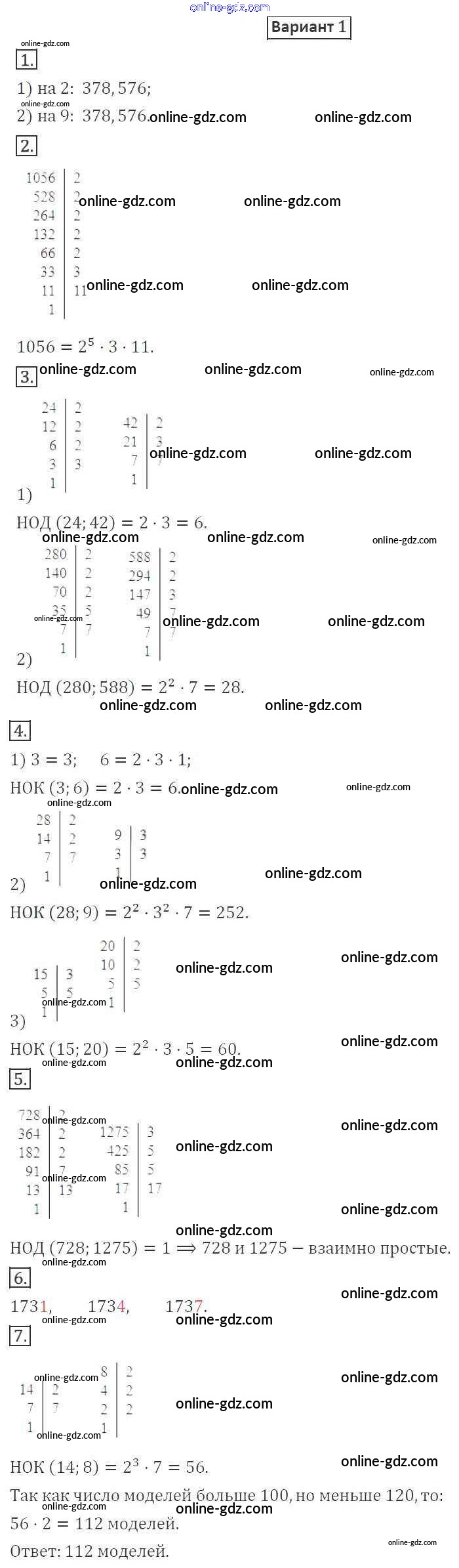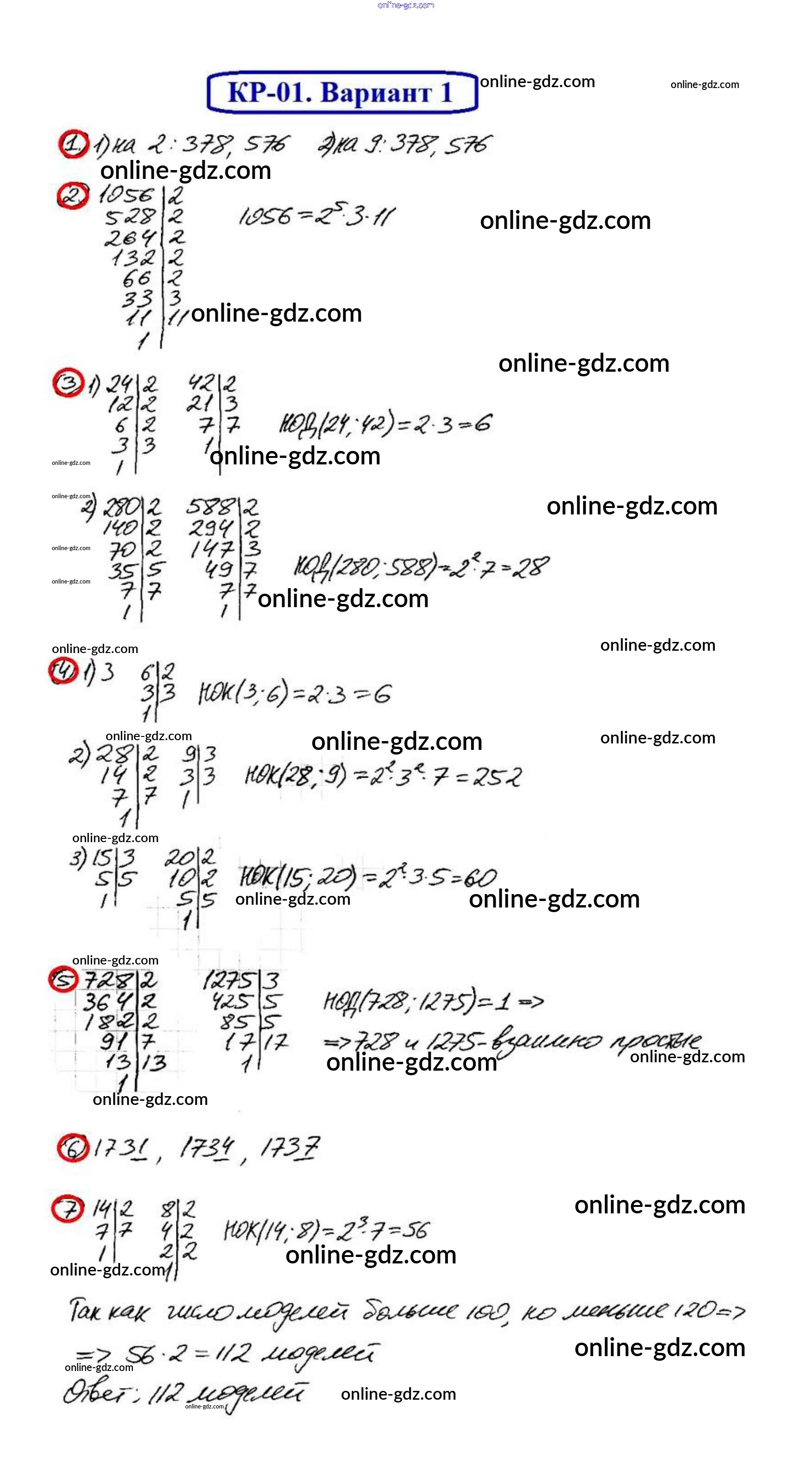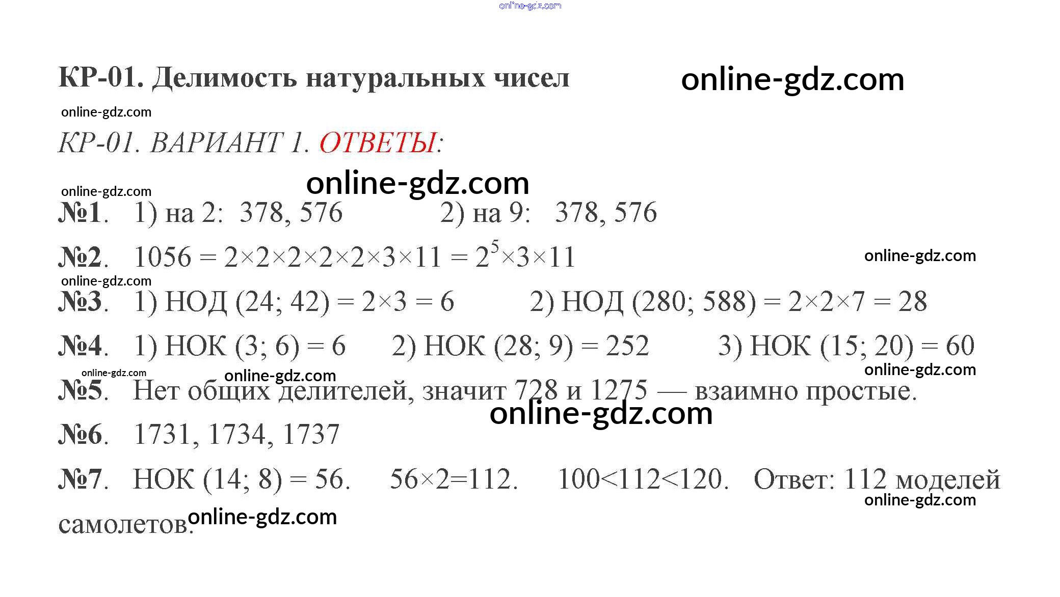 Готовые домашние задания по Математике за 6 класс Дидактические материалы Мерзляк, Полонский Алгоритм успеха 2017 - КР-1. Варианты Контрольные работы 1