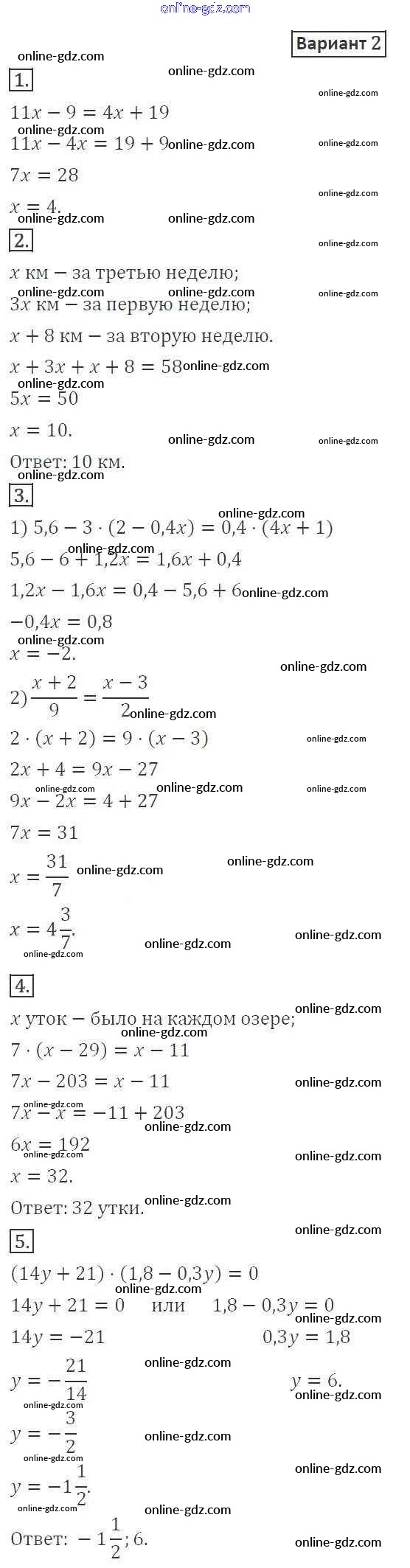 Готовые домашние задания по Математике за 6 класс Дидактические материалы Мерзляк, Полонский Алгоритм успеха 2017 - КР-10. Варианты Контрольные работы 2