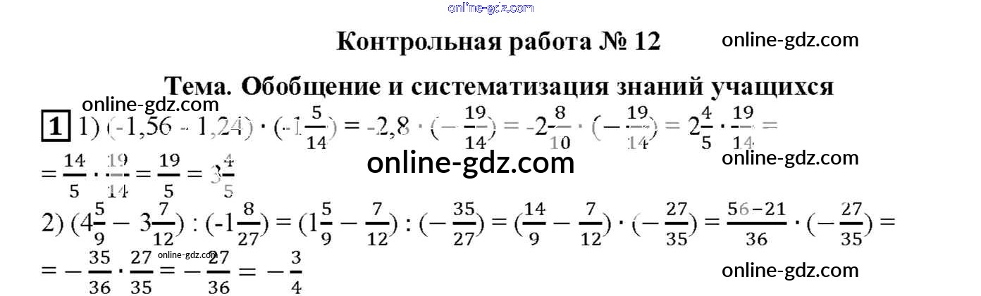 Готовые домашние задания по Математике за 6 класс Дидактические материалы Мерзляк, Полонский Алгоритм успеха 2017 - КР-12. Варианты Контрольные работы 2