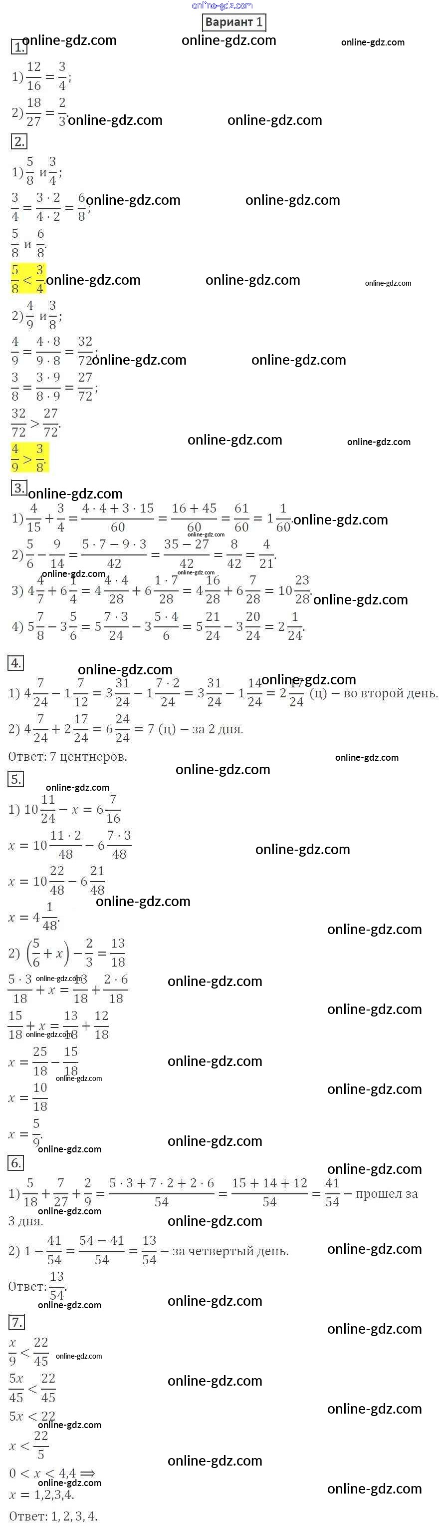 Готовые домашние задания по Математике за 6 класс Дидактические материалы Мерзляк, Полонский Алгоритм успеха 2017 - КР-2. Варианты Контрольные работы 1