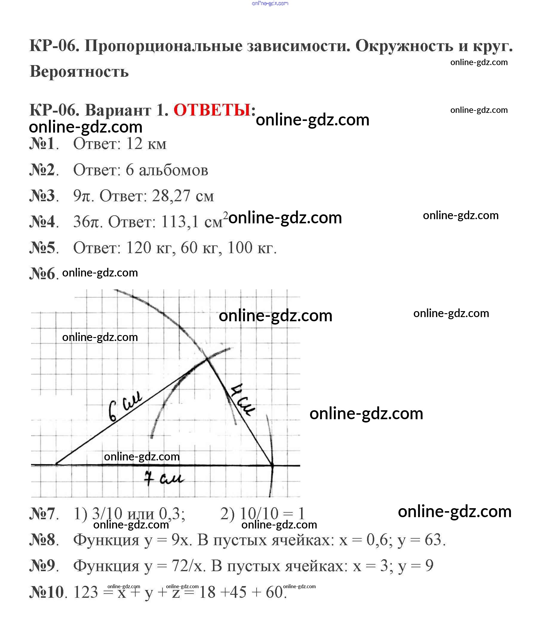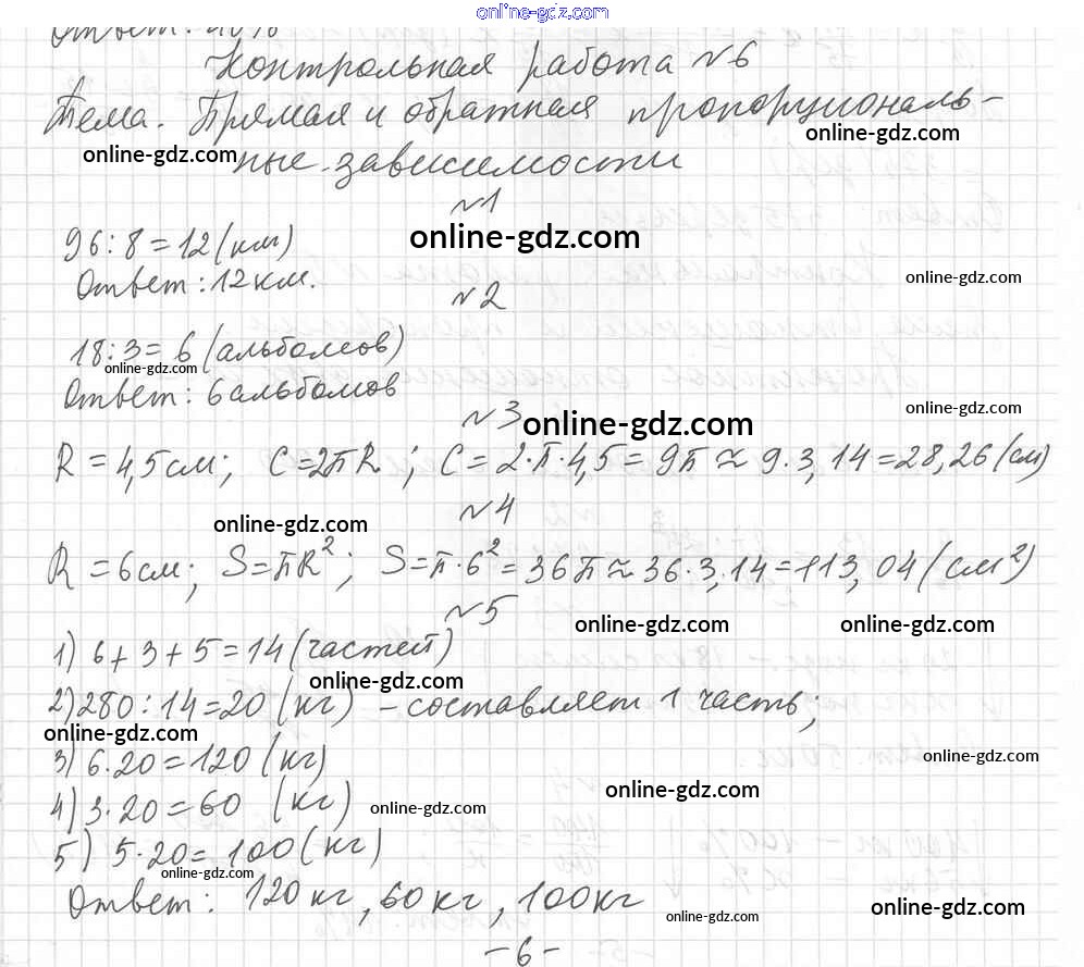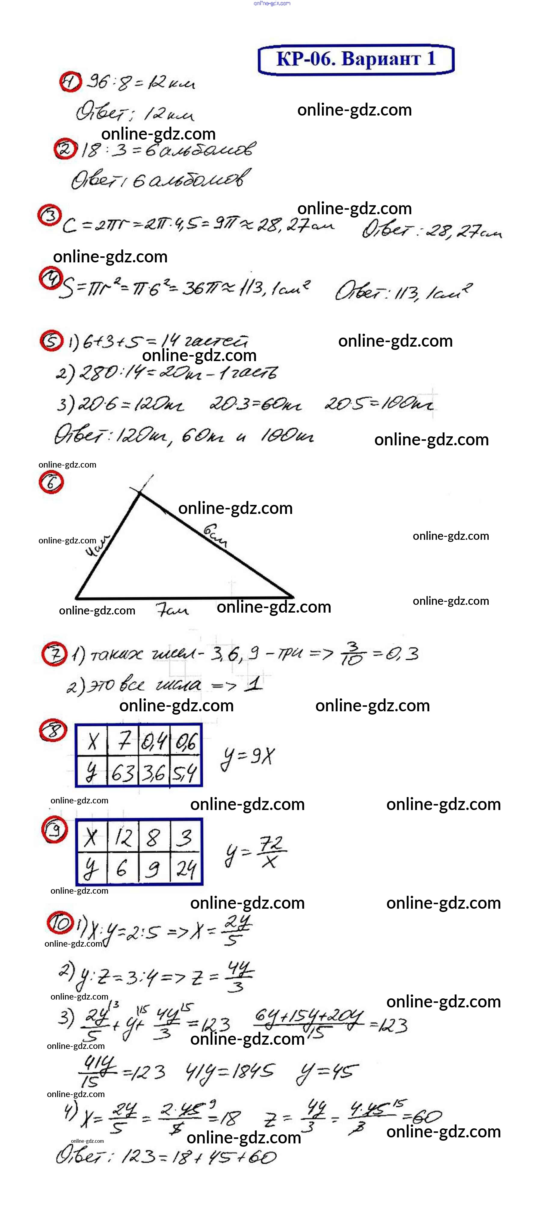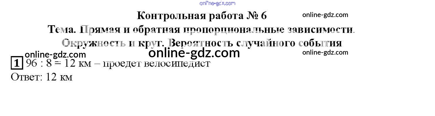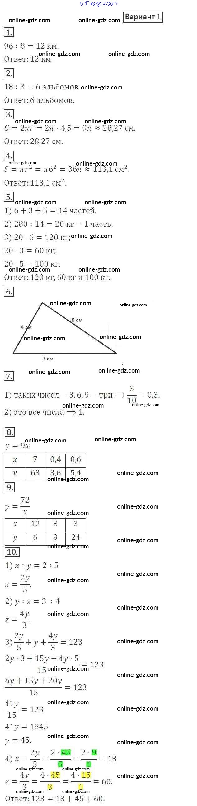 Готовые домашние задания по Математике за 6 класс Дидактические материалы Мерзляк, Полонский Алгоритм успеха 2017 - КР-6. Варианты Контрольные работы 1
