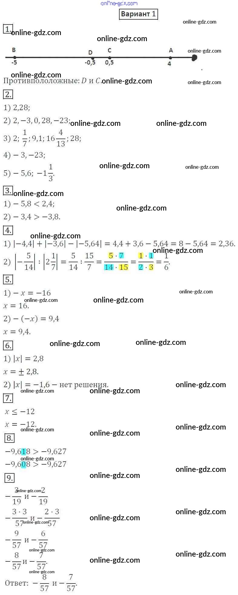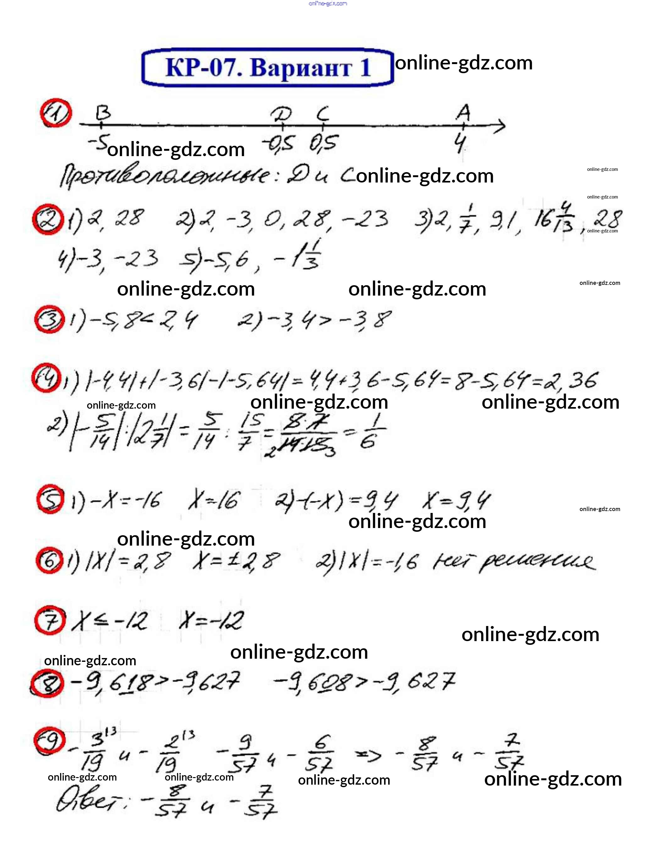 Готовые домашние задания по Математике за 6 класс Дидактические материалы Мерзляк, Полонский Алгоритм успеха 2017 - КР-7. Варианты Контрольные работы 1