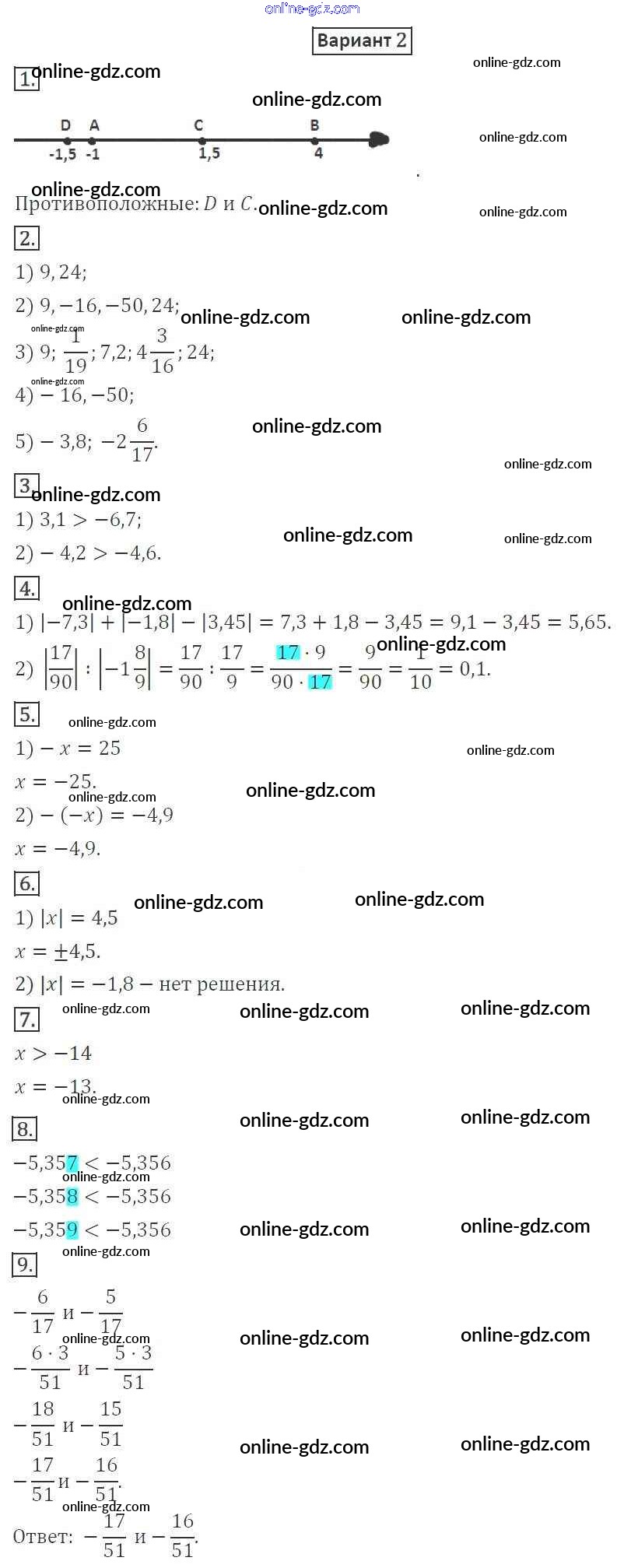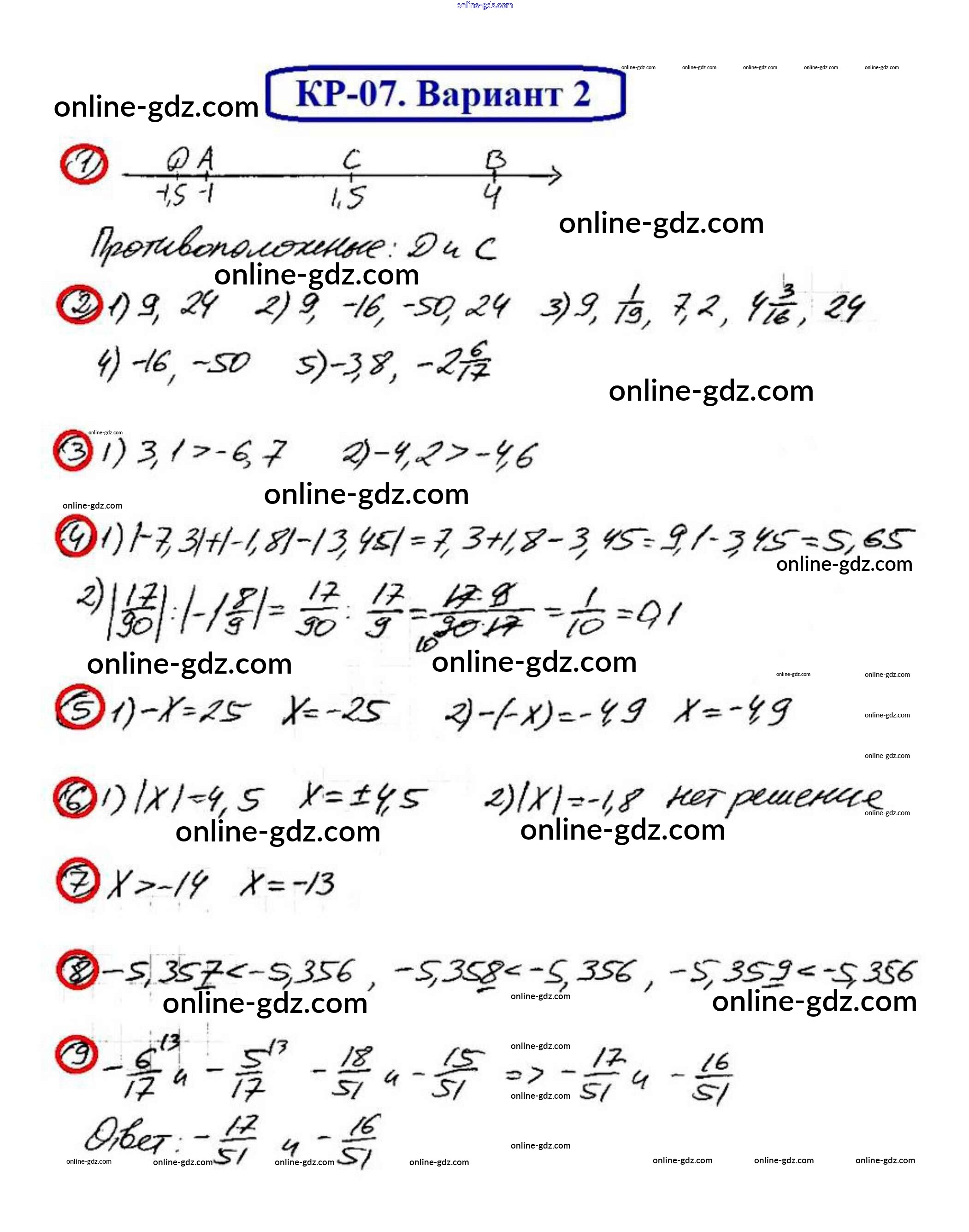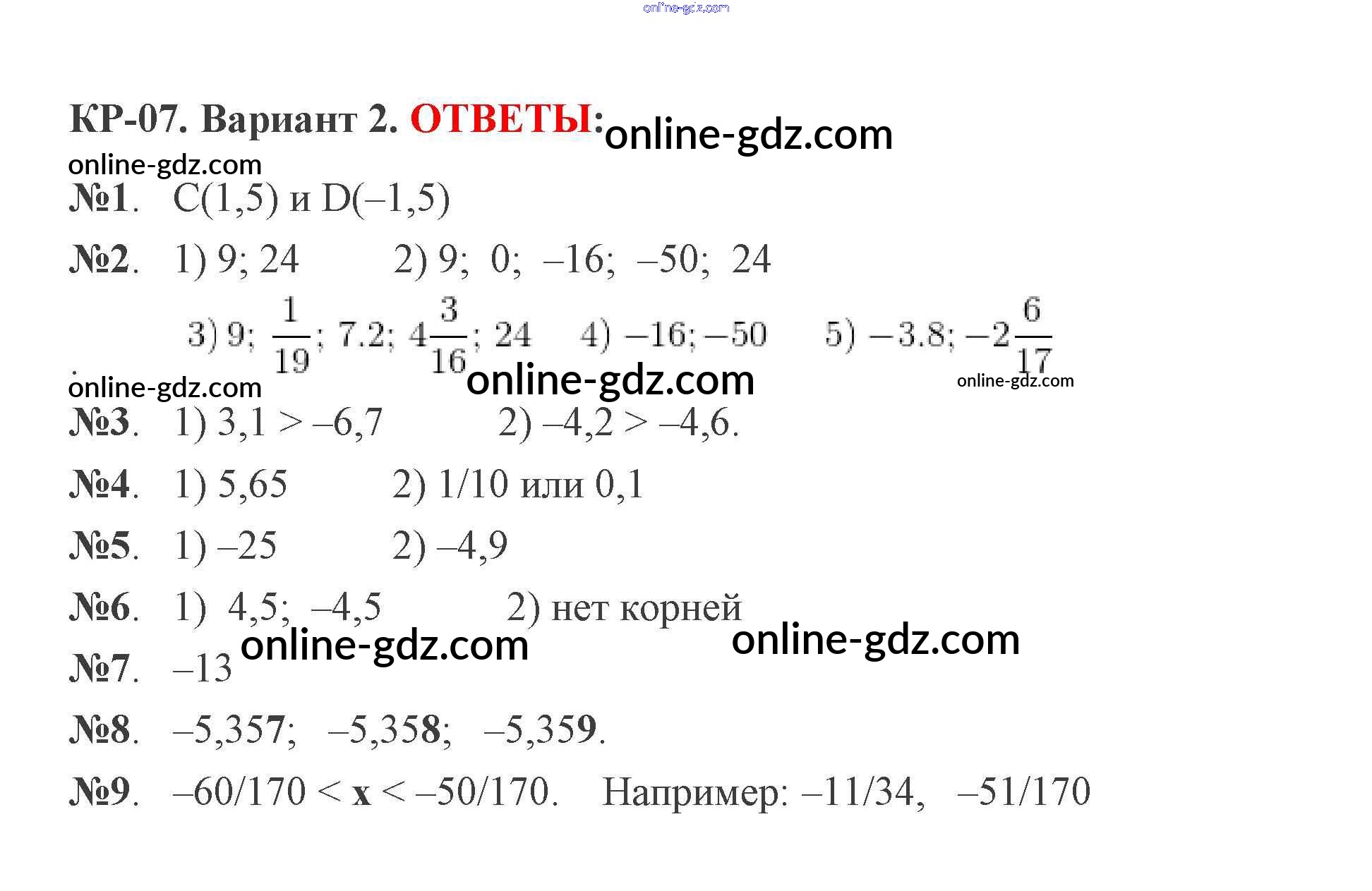 Готовые домашние задания по Математике за 6 класс Дидактические материалы Мерзляк, Полонский Алгоритм успеха 2017 - КР-7. Варианты Контрольные работы 2