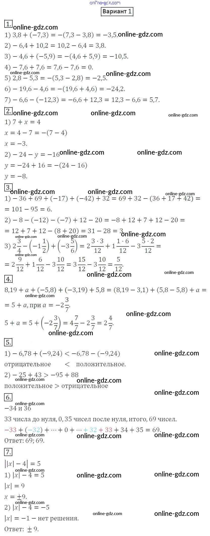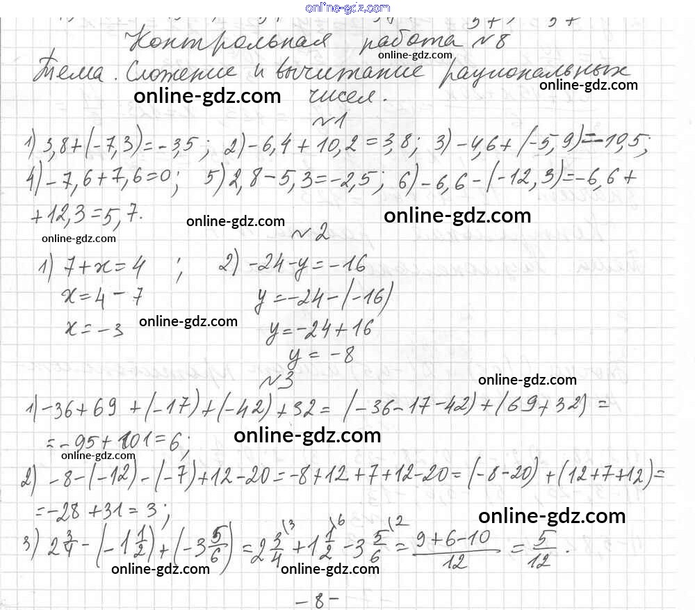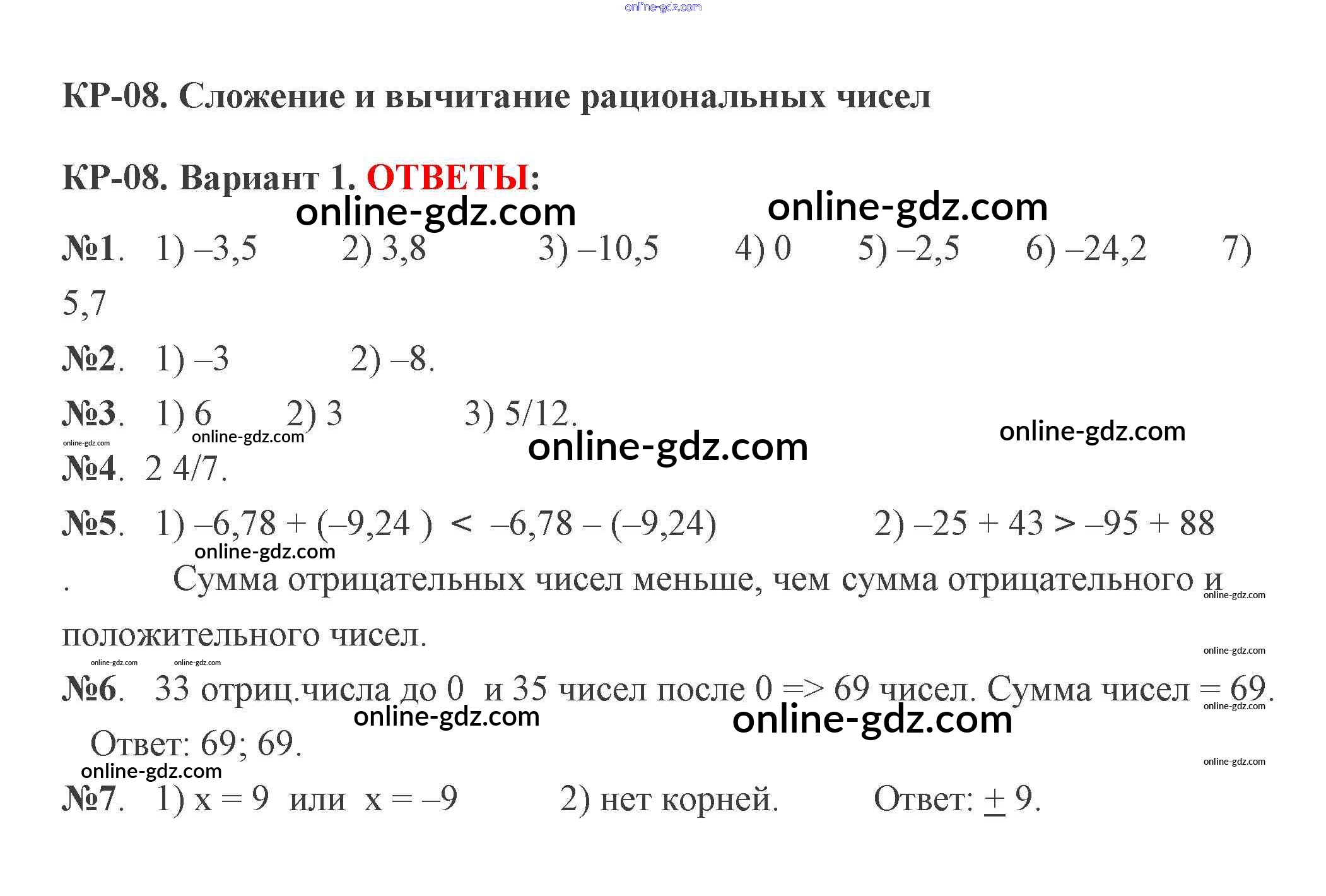 Готовые домашние задания по Математике за 6 класс Дидактические материалы Мерзляк, Полонский Алгоритм успеха 2017 - КР-8. Варианты Контрольные работы 1