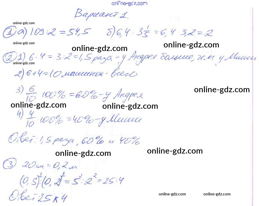 Готовые домашние задания по Математике за 6 класс Самостоятельные и контрольные работы Попов УМК 2017 - СР-19. Варианты Самостоятельные работы 1