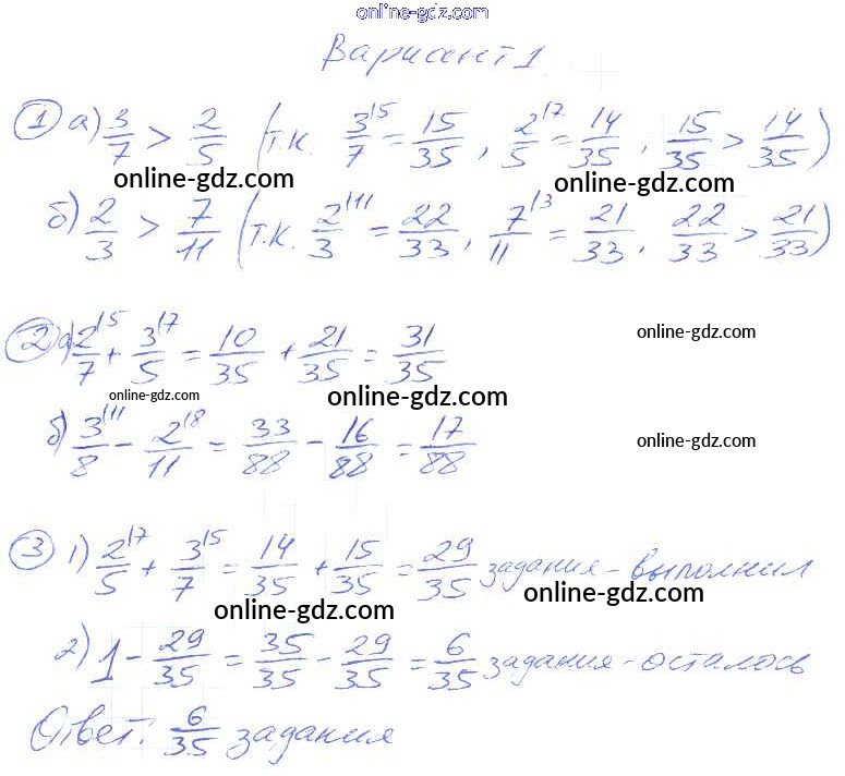 Готовые домашние задания по Математике за 6 класс Самостоятельные и контрольные работы Попов УМК 2017 - СР-8. Варианты Самостоятельные работы 1