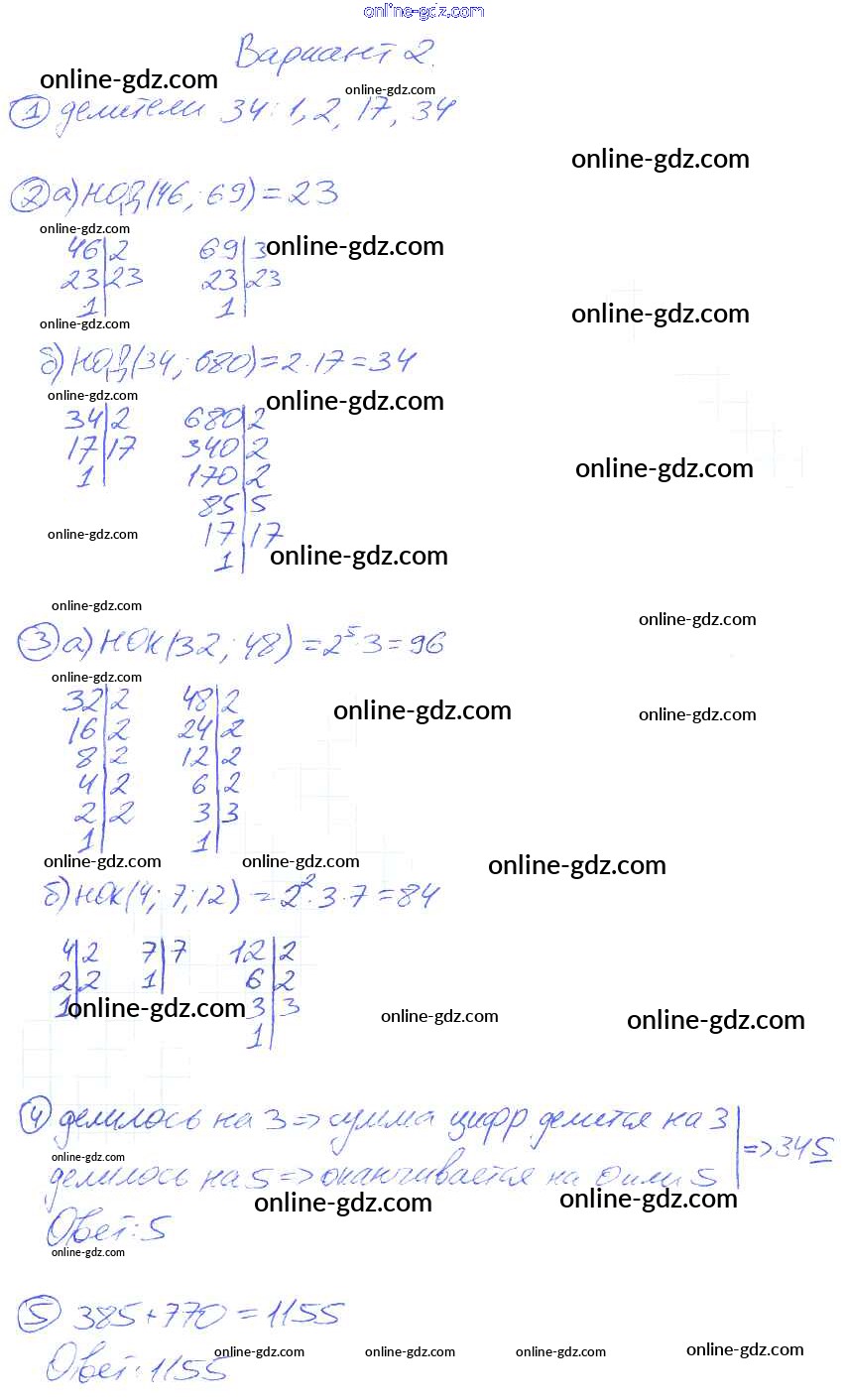 Готовые домашние задания по Математике за 6 класс Самостоятельные и контрольные работы Попов УМК 2017 - КР-1. Варианты Контрольные работы 2