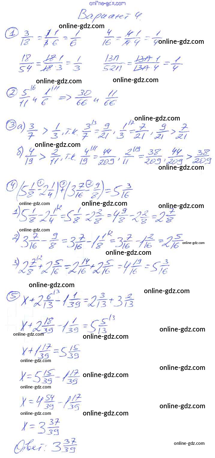 Готовые домашние задания по Математике за 6 класс Самостоятельные и контрольные работы Попов УМК 2017 - КР-2. Варианты Контрольные работы 4