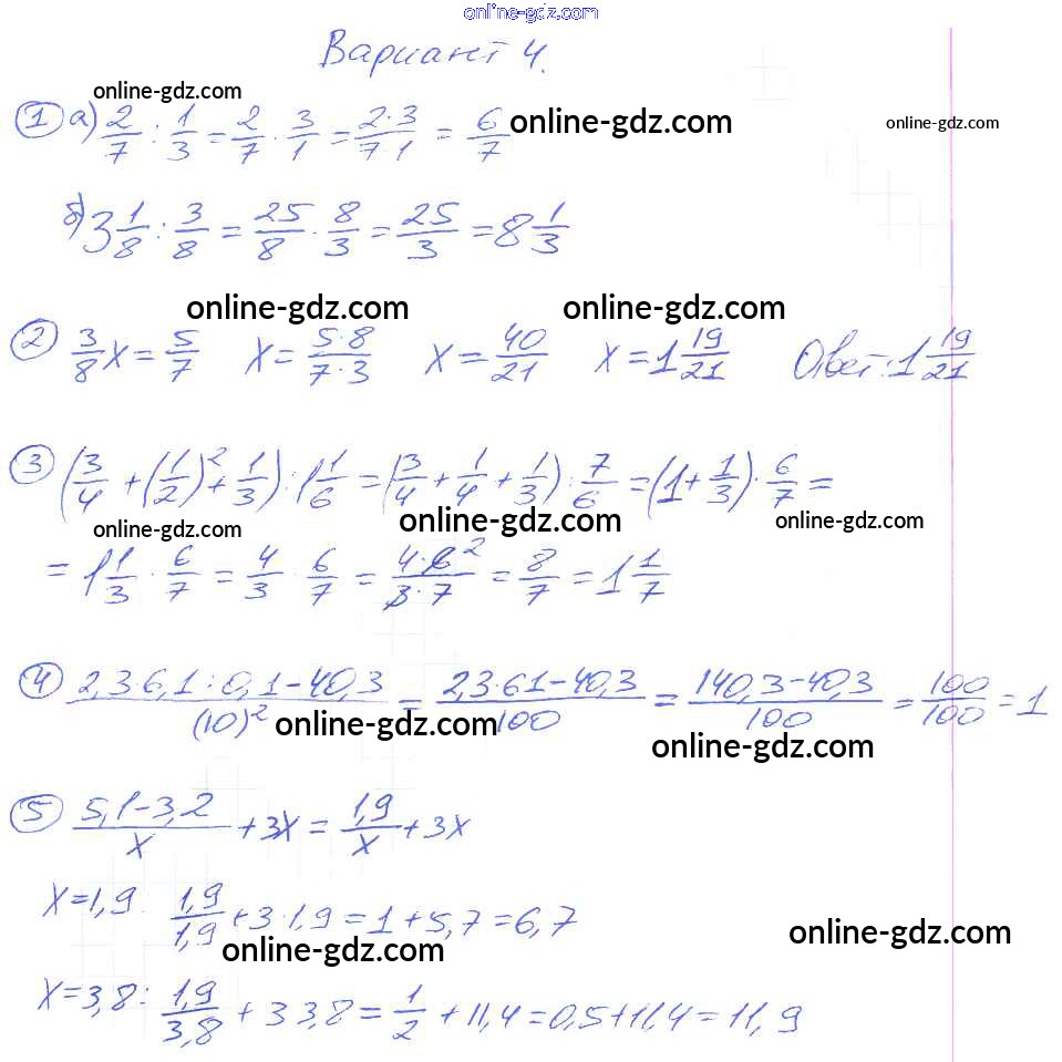 Готовые домашние задания по Математике за 6 класс Самостоятельные и контрольные работы Попов УМК 2017 - КР-4. Варианты Контрольные работы 4