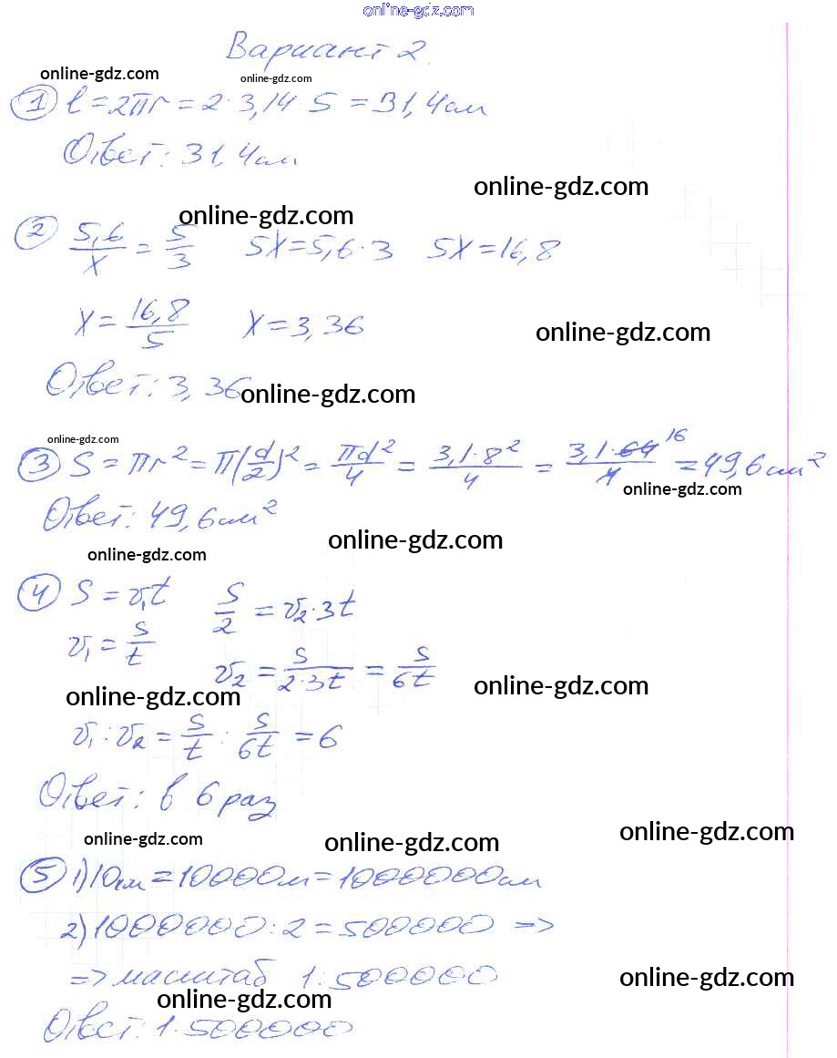Готовые домашние задания по Математике за 6 класс Самостоятельные и контрольные работы Попов УМК 2017 - КР-5. Варианты Контрольные работы 2