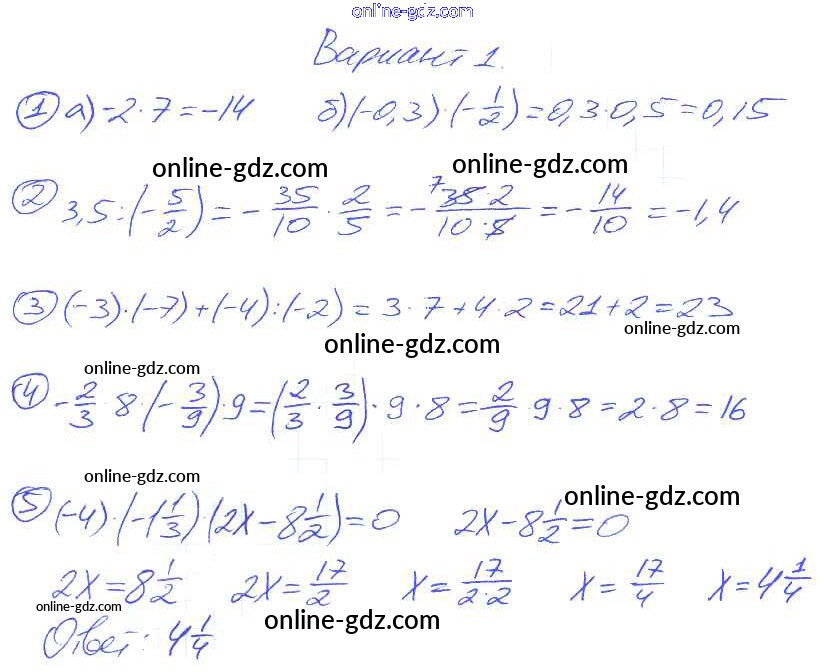 Готовые домашние задания по Математике за 6 класс Самостоятельные и контрольные работы Попов УМК 2017 - КР-8. Варианты Контрольные работы 1