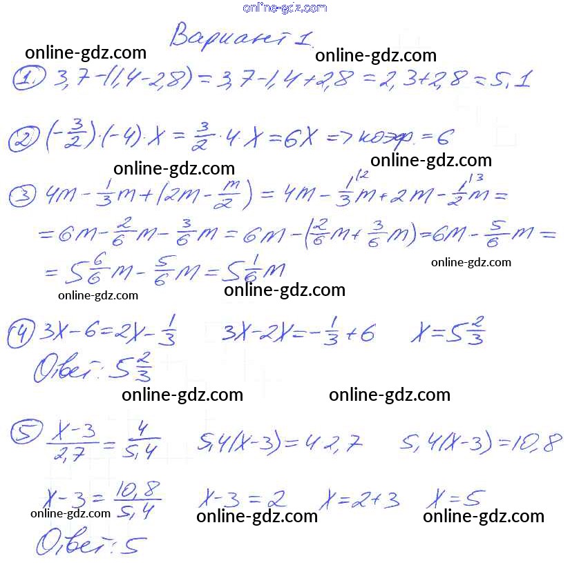 Готовые домашние задания по Математике за 6 класс Самостоятельные и контрольные работы Попов УМК 2017 - КР-9. Варианты Контрольные работы 1