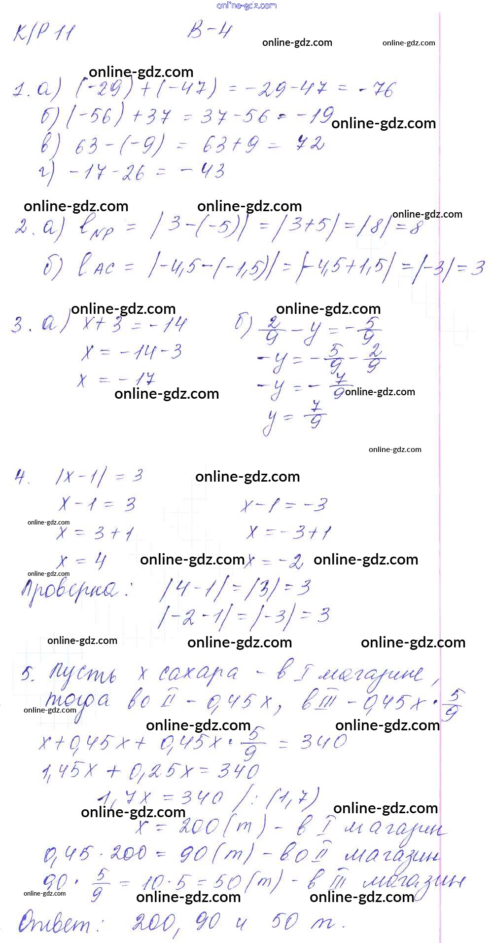 Готовые домашние задания по Математике за 6 класс Контрольные работы Дудницын, Кронгауз УМК 2013 - КР-11. Варианты 4
