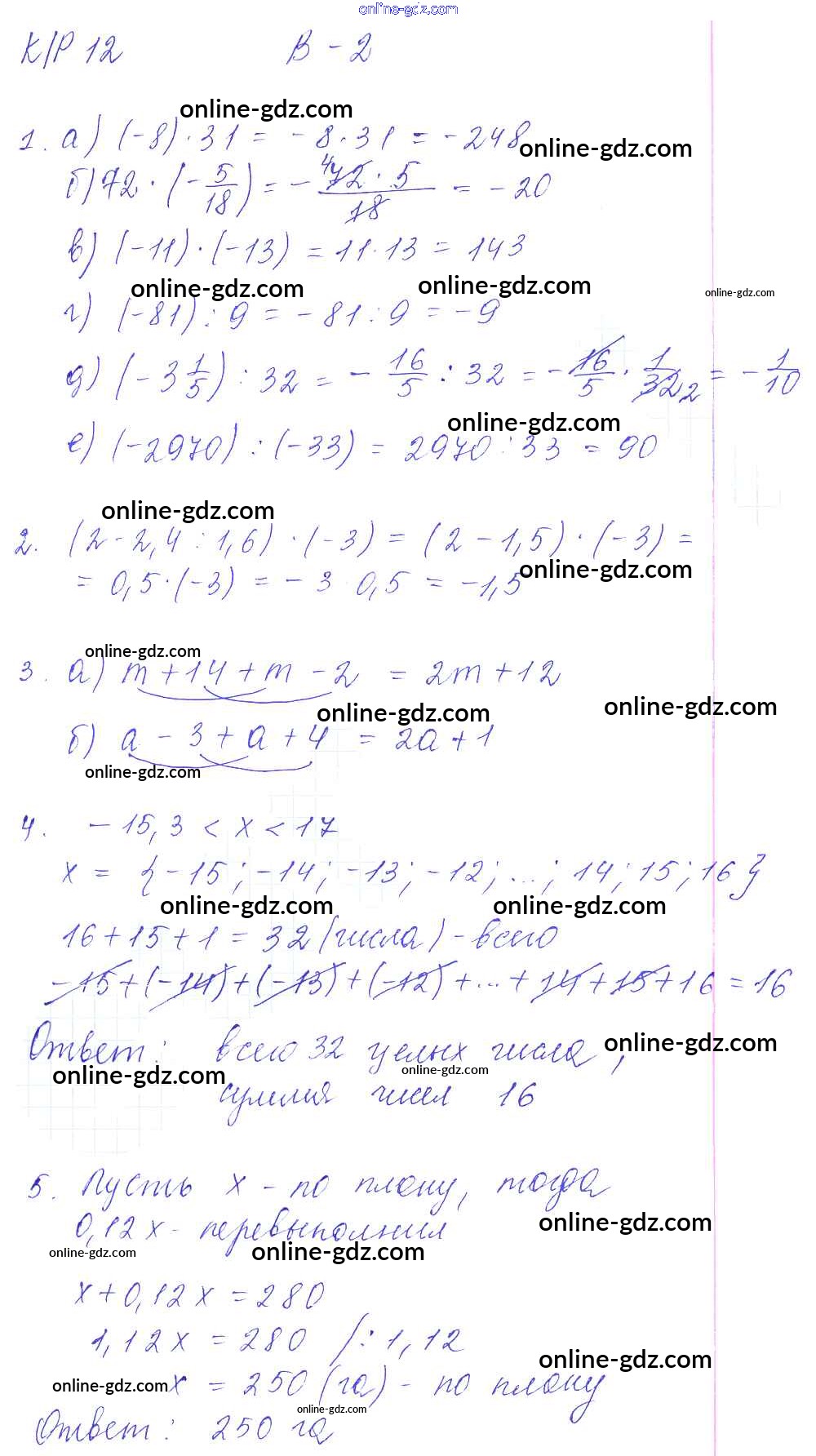 Готовые домашние задания по Математике за 6 класс Контрольные работы Дудницын, Кронгауз УМК 2013 - КР-12. Варианты 2