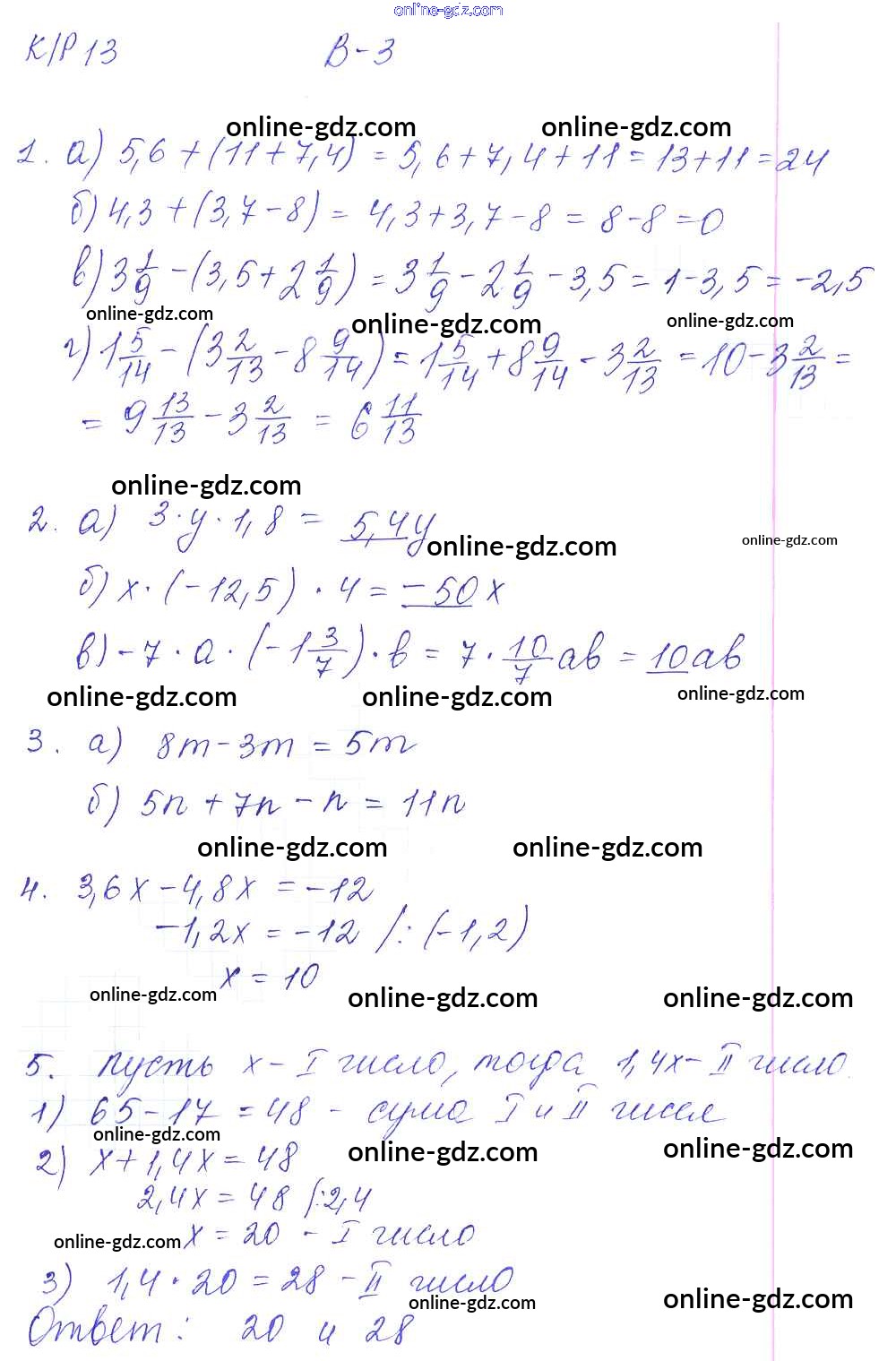 Готовые домашние задания по Математике за 6 класс Контрольные работы Дудницын, Кронгауз УМК 2013 - КР-13. Варианты 3