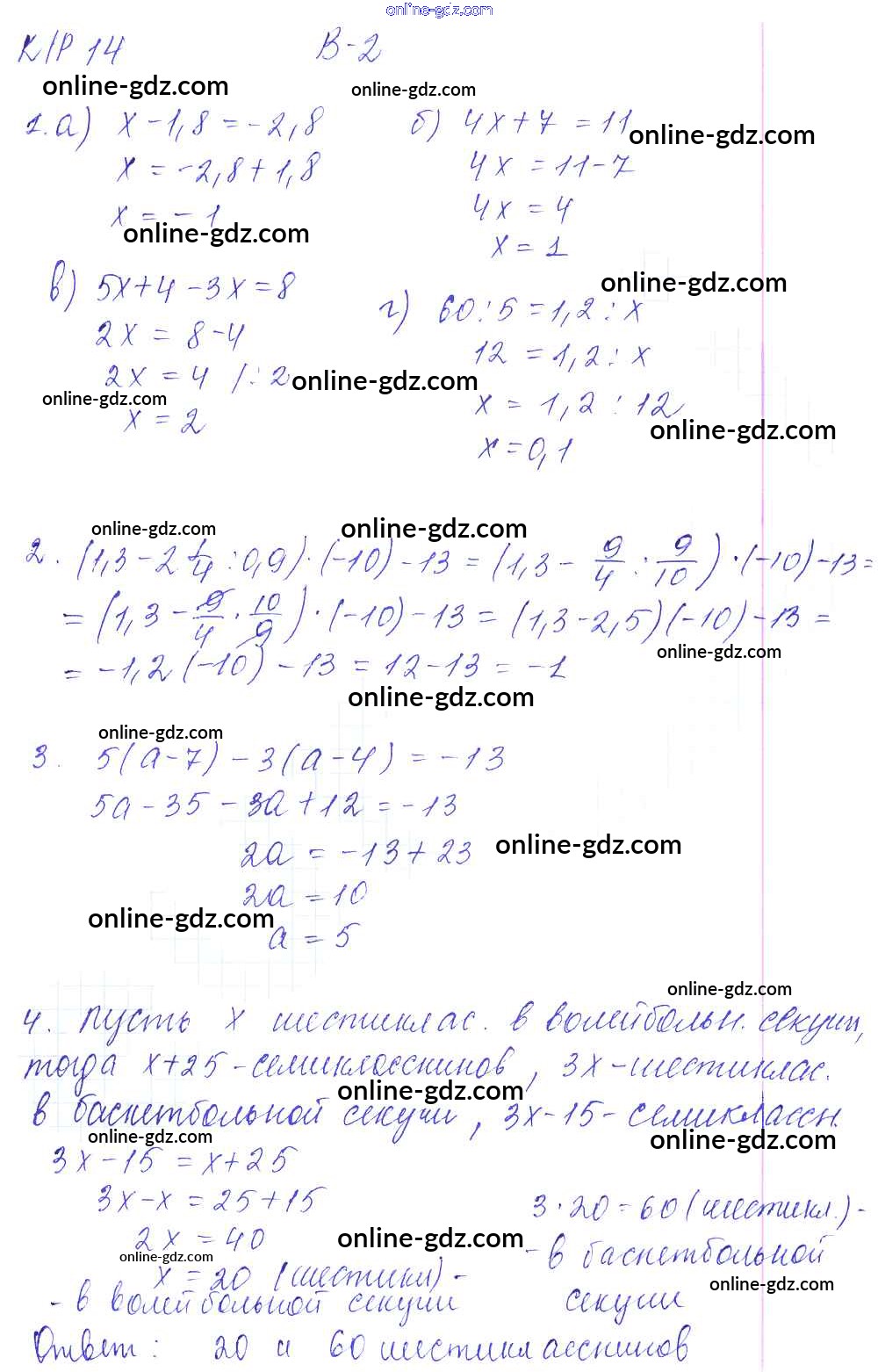 Готовые домашние задания по Математике за 6 класс Контрольные работы Дудницын, Кронгауз УМК 2013 - КР-14. Варианты 2