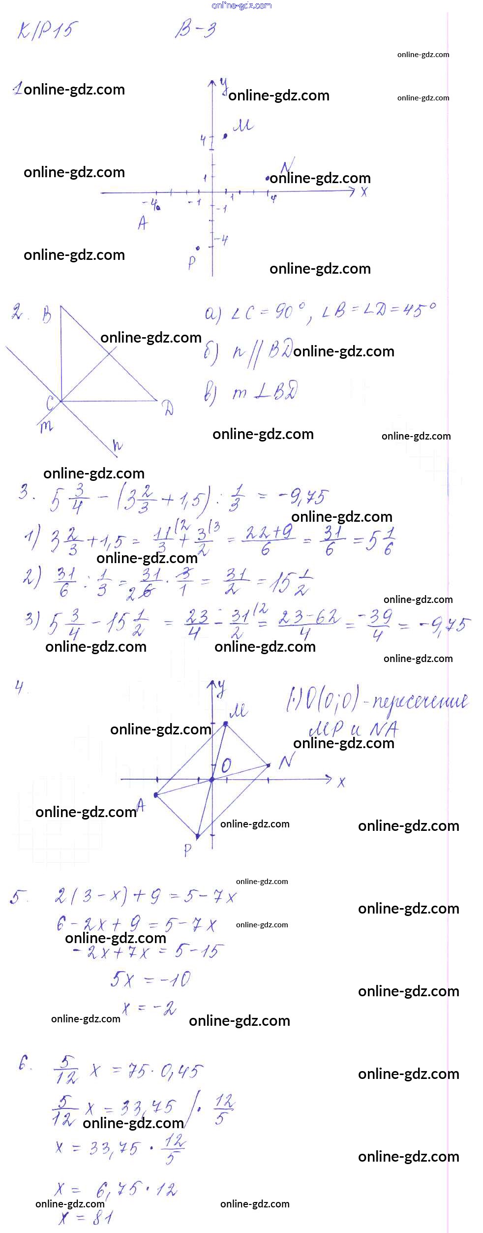 Готовые домашние задания по Математике за 6 класс Контрольные работы Дудницын, Кронгауз УМК 2013 - КР-15. Варианты 3
