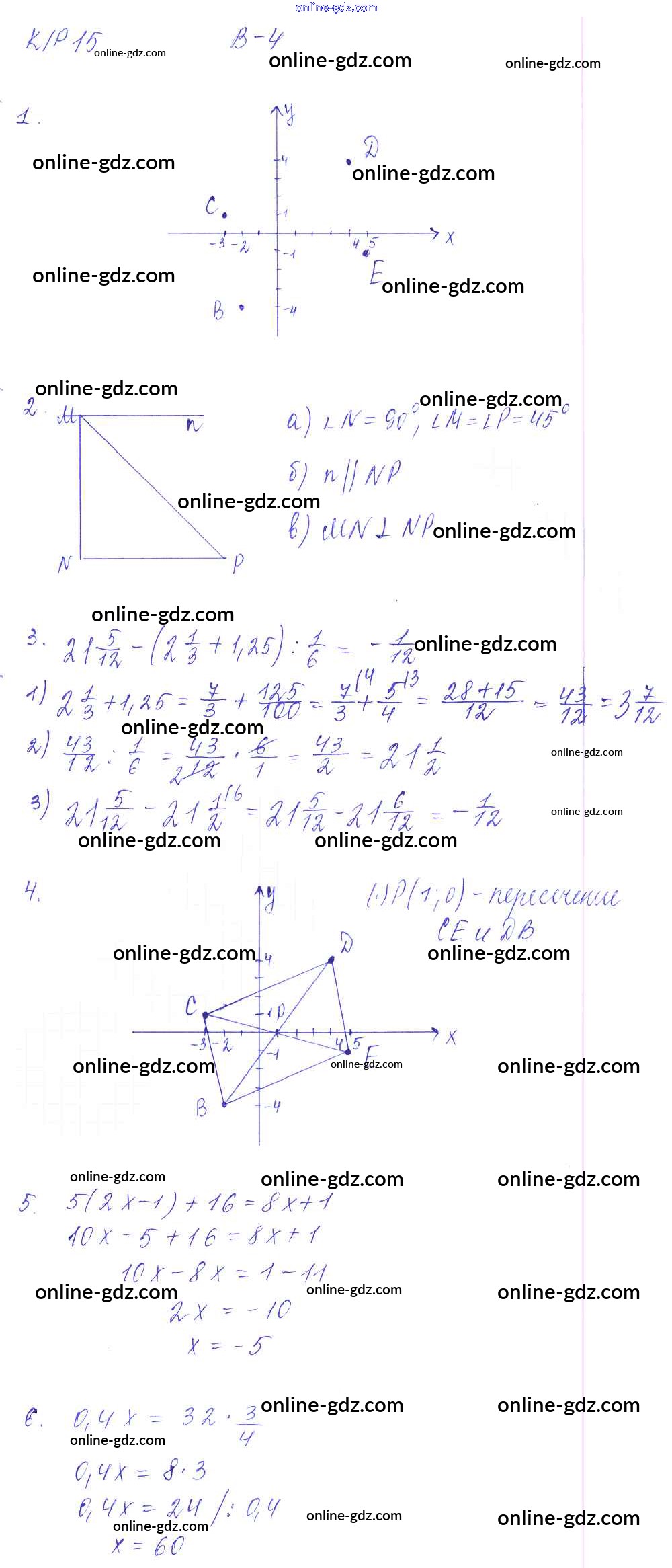 Готовые домашние задания по Математике за 6 класс Контрольные работы Дудницын, Кронгауз УМК 2013 - КР-15. Варианты 4