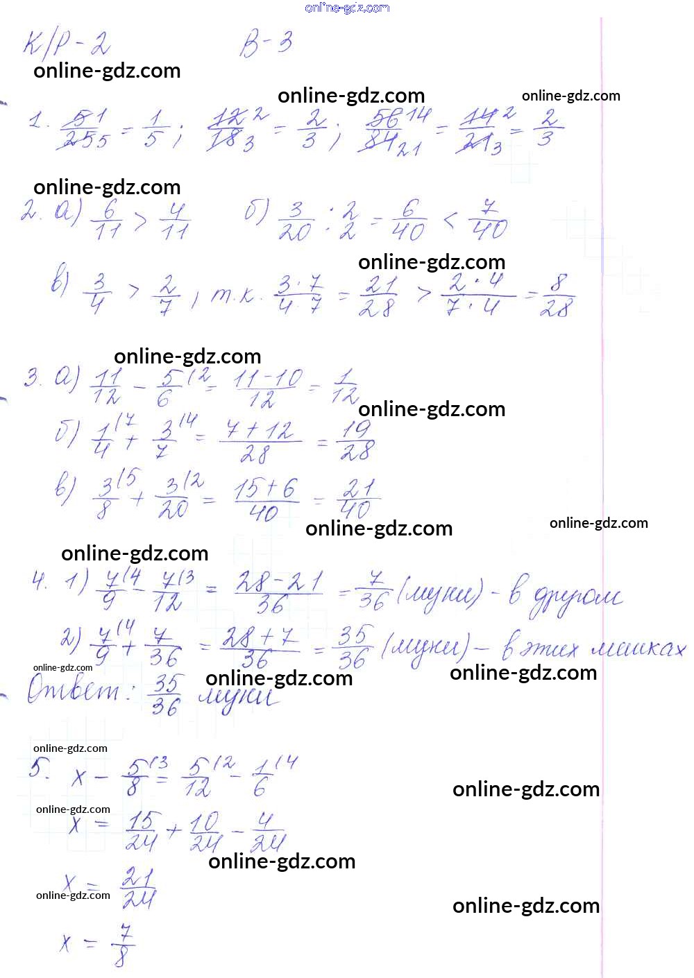 Готовые домашние задания по Математике за 6 класс Контрольные работы Дудницын, Кронгауз УМК 2013 - КР-2. Варианты 3