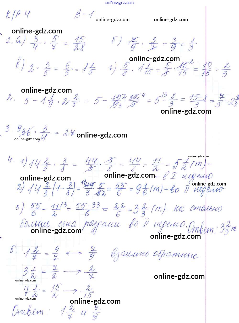 Готовые домашние задания по Математике за 6 класс Контрольные работы Дудницын, Кронгауз УМК 2013 - КР-4. Варианты 1